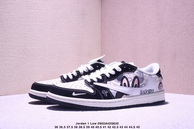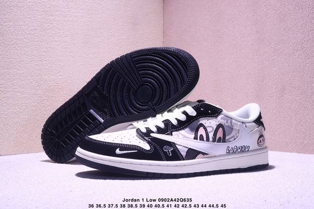 High-end custom Travis Scott x Jordan 1 Low "Labubu Labubu collaboration" Jordan inverted hook low-top casual sneakers. Original full-grain leather from a large factory. Pure original quality shipment. Genuine version. Custom shoe box. Leather cut cleanly without any burrs. Perfect details and ultra-high cleanliness.