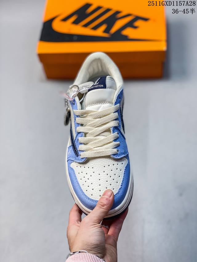 High-end custom Travis Scott X Jordan 1 Low Lv collaboration - White, Green, Black, Brown Reverse Swoosh Low-top Casual Version. Original factory full top-grain leather, top-quality original factory, genuine fit, custom shoe box, clean leather cutting with no rough edges, perfect details, extremely high cleanliness. Product Code: Dz2688-002. Sizes: 36, 36.5, 37.5, 38, 38.5, 39, 40, 40.5, 41, 42, 42.5, 43, 44, 44.5, 45. (Item number: 11Gxd1157A28)
