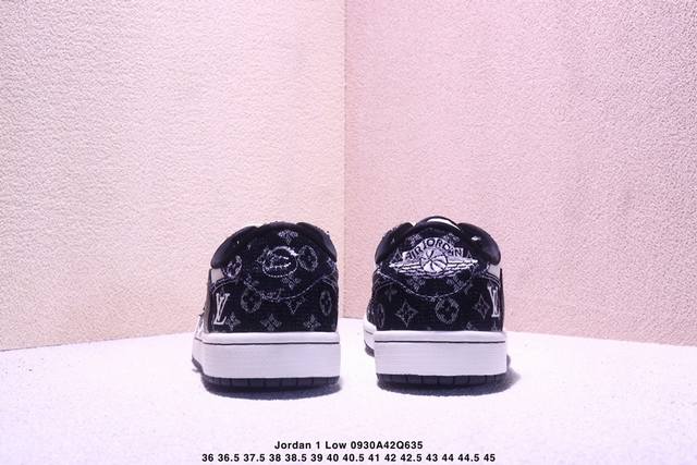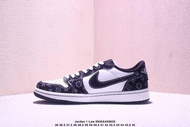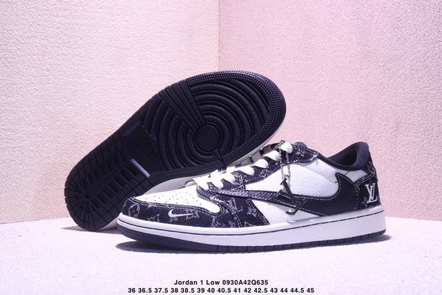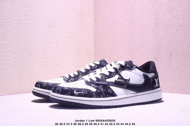 High-end custom Travis Scott x Jordan 1 Low Lv joint name - white and black denim inverted hook low-top casual version Original full-grain leather factory pure original quality shipment Pure version custom shoe box Leather cut cleanly without any burrs Perfect details Ultra-high cleanliness
