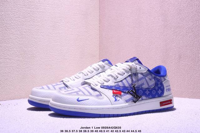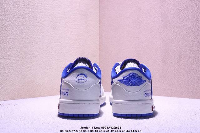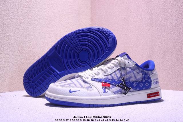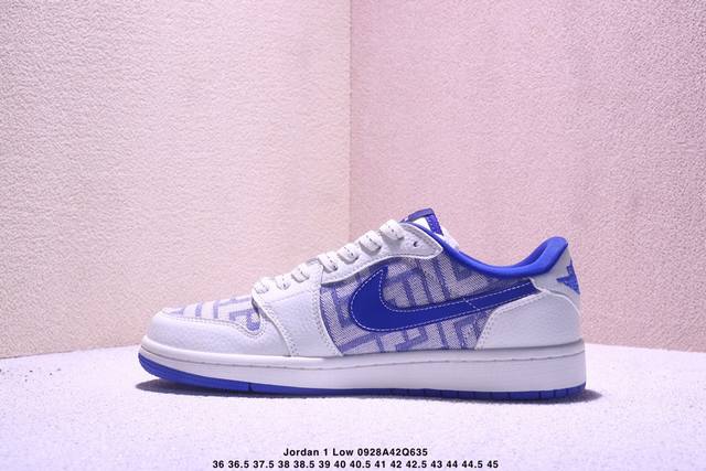 High-end custom Travis Scott x Jordan 1 Low Lv joint name - white and blue denim inverted hook low-top casual version Original full-grain leather factory pure original quality shipment Pure version custom shoe box Leather cut cleanly without any burrs Perfect details Ultra-high cleanliness