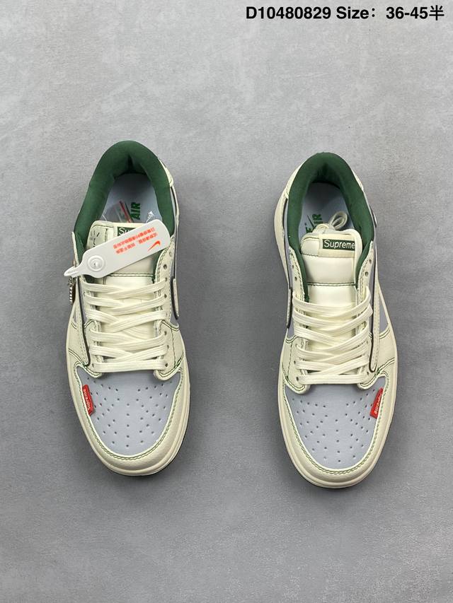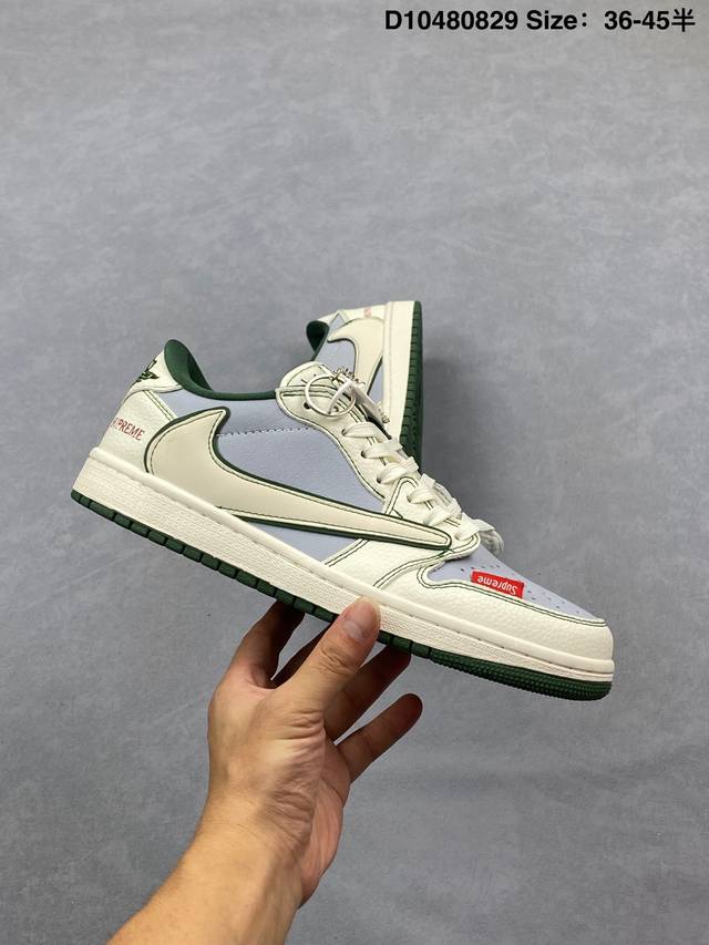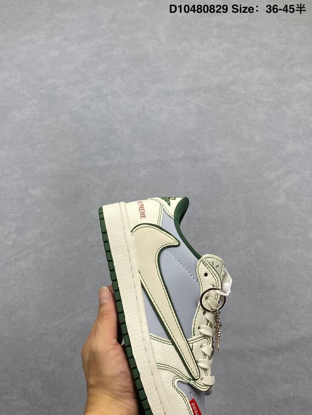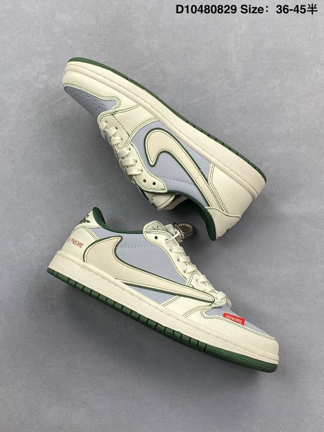 High-end customized Travis Scott X Jordan 1 Low "Labubu Labubu co-branded" Jordan inverted hook low-top casual sneakers Original full-grain leather factory pure original quality shipment authentic version custom shoe box leather cut clean without any burrs perfect details ultra-high cleanliness