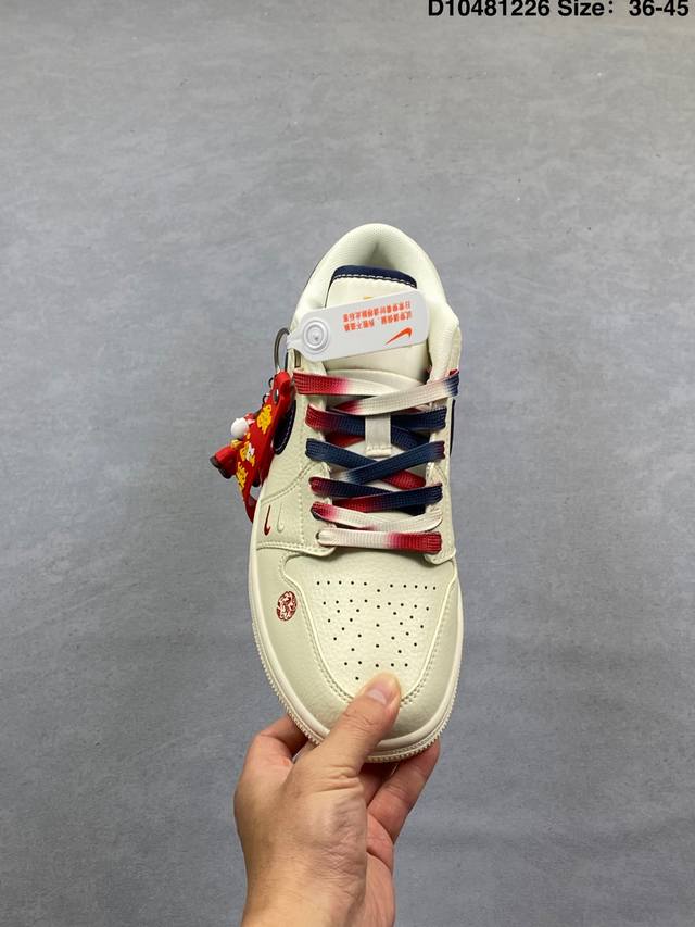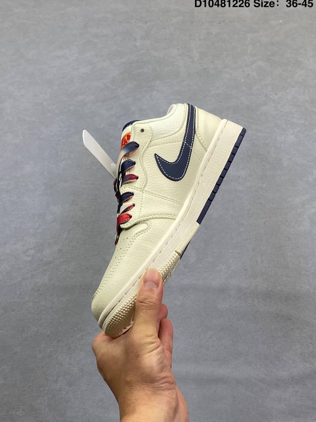 Jordan Air Jordan 1 Low, a retro-inspired casual basketball shoe. Inspired by the original 1985 model, this shoe offers a fresh take on a simple yet classic look, feeling familiar yet innovative. Stitching details and an embroidered Wings logo on the heel highlight the distinctive style of the Jordan brand. The leather upper provides excellent structure and durability. Sizes: 36 36.5 37.5 38 38.5 39 40 40.5 41 42 42.5 43 44 45 Style Code: Jw1188-145 D10481226