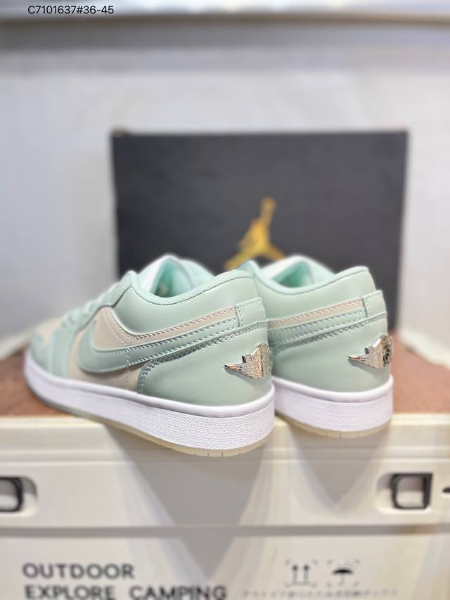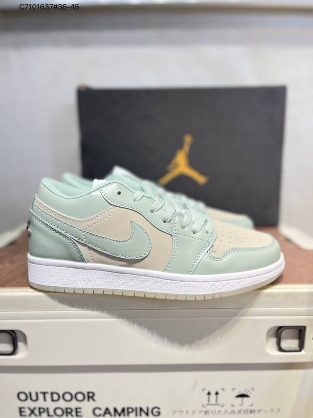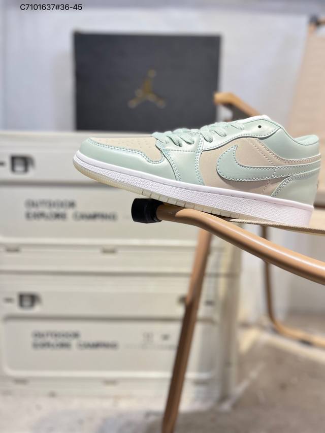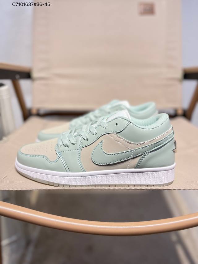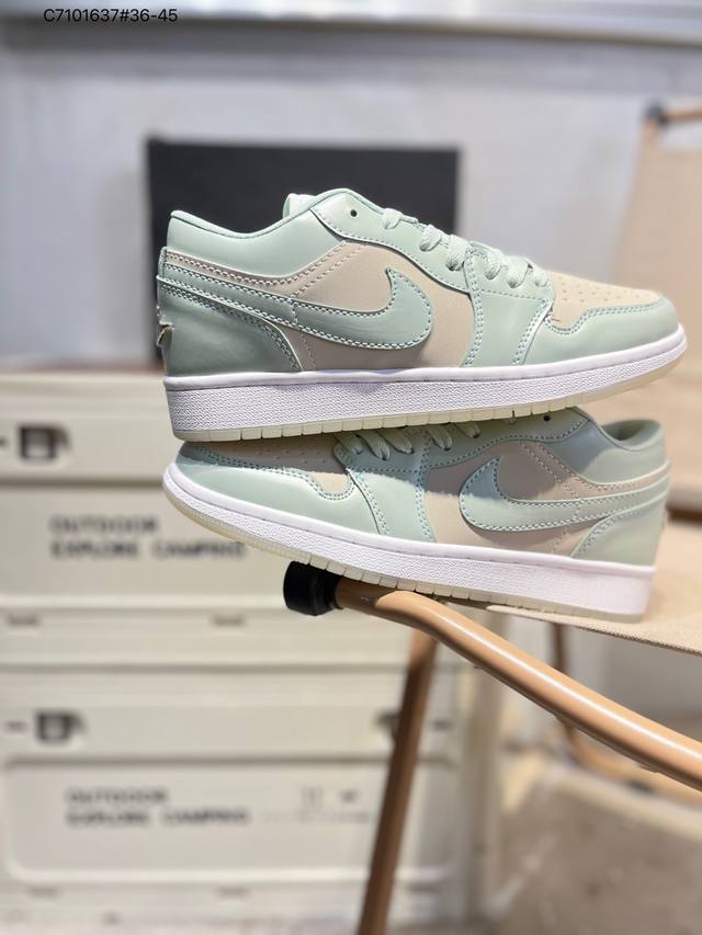 Original barefoot-grade Air Jordan 1 Low white/green pure original series, the h