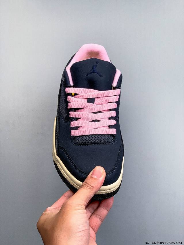 features a low-top silhouette. The first release, in black, gray-black, and varsity red, inherits the iconic Jumpman DNA with co-branded logo details and distressed accents for a cutting-edge look. The