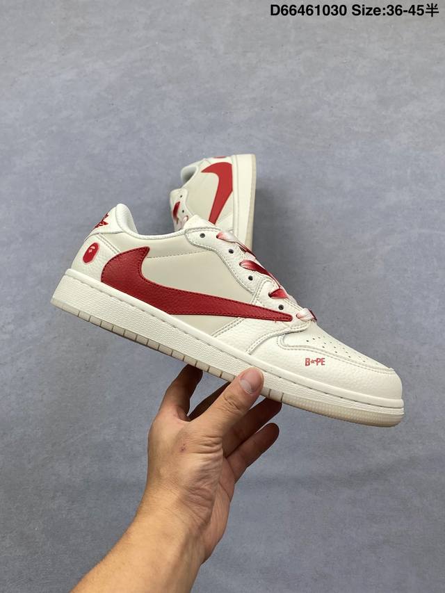 Jordan Fragment X Travis Scott X LV Air Jordan 1 Low Three-Way Collaboration with Reverse Swoosh. The entire shoe is crafted from pebbled leather, featuring a white reverse Swoosh on the waist and Travis Scott's iconic logo. The heel uses Hiroshi Fujiwara's signature blue as the main color, perfecting the white, blue, and black design style characteristic of Fragment Design. The left and right shoes are decorated with Travis Scott's ghost face and Jordan's Wings logo respectively, showcasing the luxurious style of the three-way collaboration. Sizes: 36 36.5 37.5 38 38.5 39 40 40.5 41 42 42.5 43 44 45 Style Code: Dm7866-292 D66461030