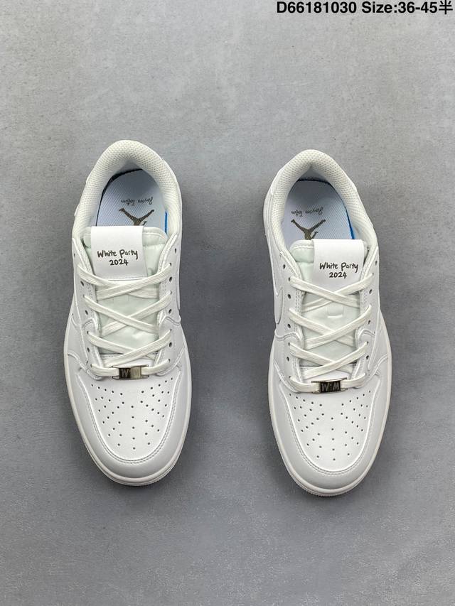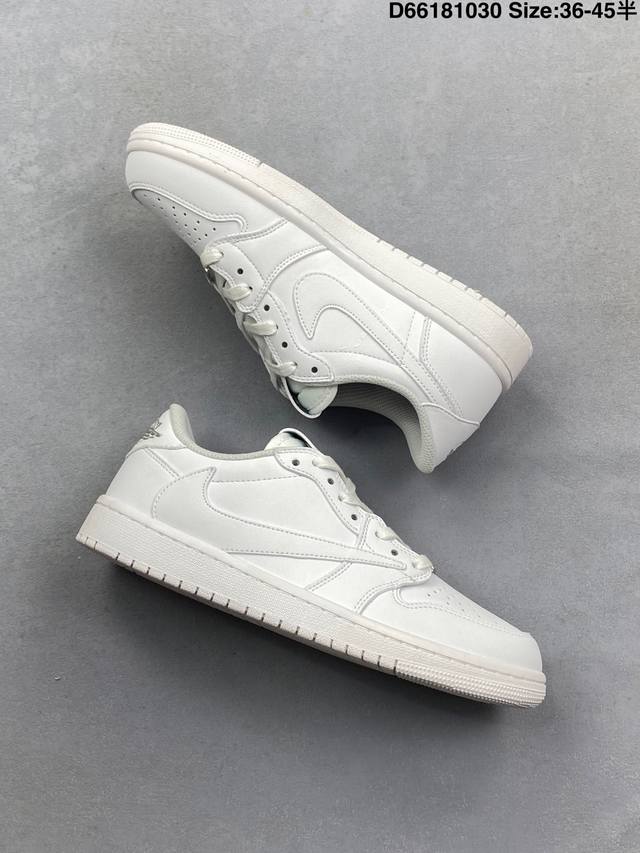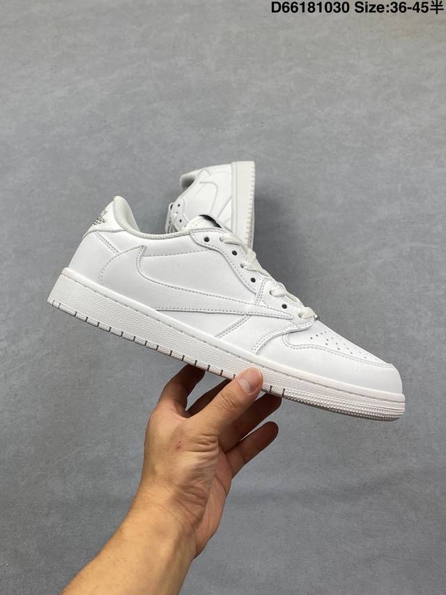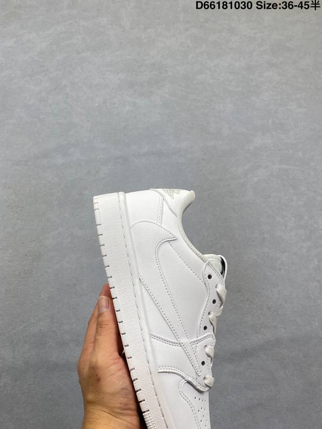 Jordan Fragment X Travis Scott X LV Air Jordan 1 Low Three-Way Collaboration with Reverse Swoosh. The entire shoe is crafted from pebbled leather, featuring a white reverse Swoosh on the waist and Travis Scott's iconic logo. The heel uses Hiroshi Fujiwara's signature blue as the main color, perfecting the white, blue, and black design style characteristic of Fragment Design. The left and right shoes are decorated with Travis Scott's ghost face and Jordan's Wings logo respectively, showcasing the luxurious style of the three-way collaboration. Sizes: 36 36.5 37.5 38 38.5 39 40 40.5 41 42 42.5 43 44 45 Style Code: Dm7866-292 D66181030
