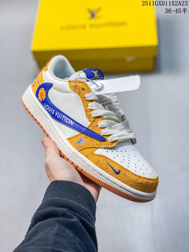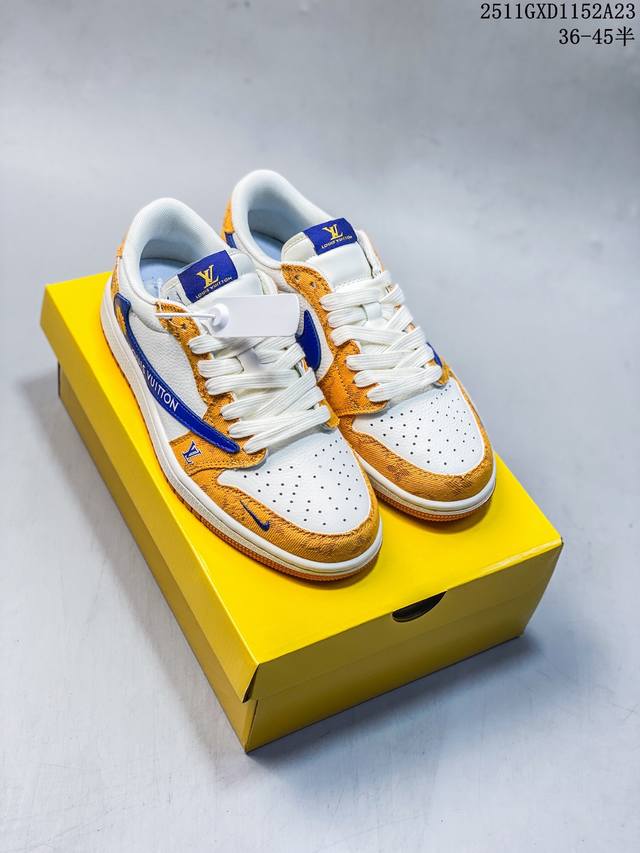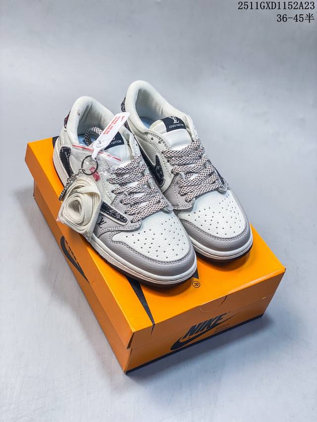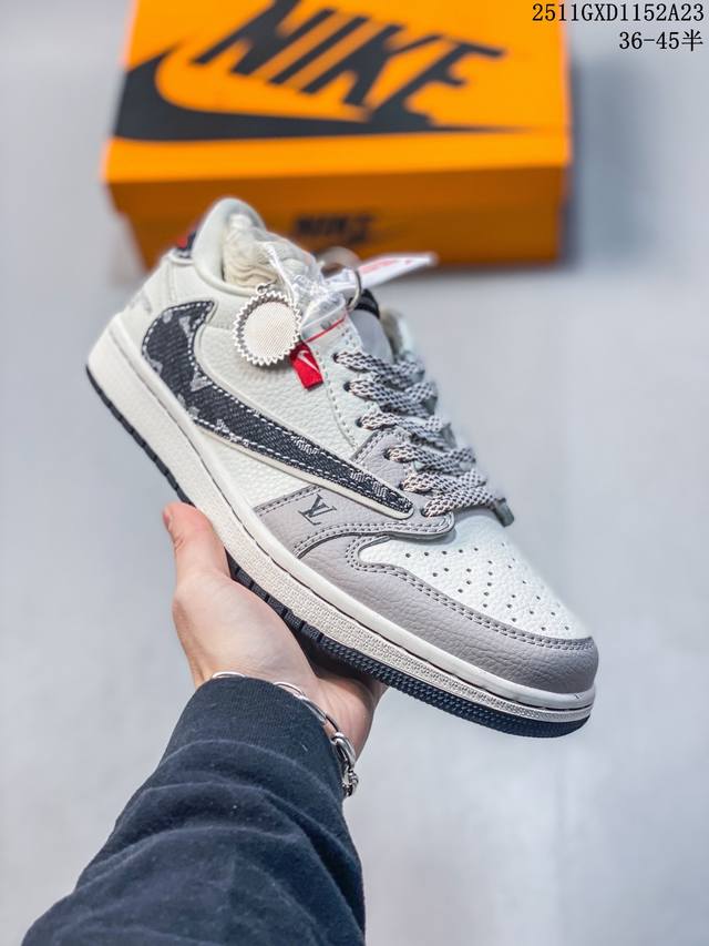 Jordan Fragment X Travis Scott Xdior Air Jordan 1 Low Three-Way Collaboration: The entire shoe is crafted from pebbled leather, featuring a white reverse Swoosh on the midfoot and Travis Scott's iconic logo. The heel uses Hiroshi Fujiwara's signature blue as the main color, perfecting Fragment Design's signature white, blue, and black design style. The left and right shoes are decorated with Travis Scott's ghost face and Jordan's Wings logo respectively, showcasing the luxurious style of the three-way collaboration. Sizes: 36 36.5 37.5 38 38.5 39 40 40.5 41 42 42.5 43 44 45 Style Code: Jw1188-143 11Gxd1152A23