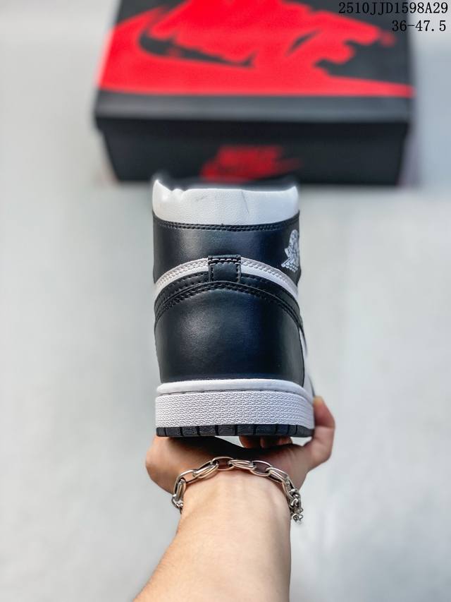Jordan original factory 3D padded tongue sponge, midsole injection holes and meticulous midsole lasting process, original data developed mold, classic black and white color scheme outsole, Nike Air Jordan 1 Retro High Og Black White AJ1 Michael Jordan high-top classic retro versatile casual culture sports basketball shoe "Black and White Original Year" 555088-010