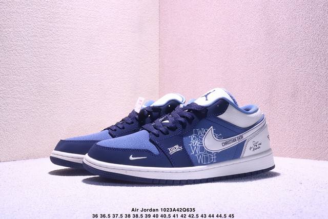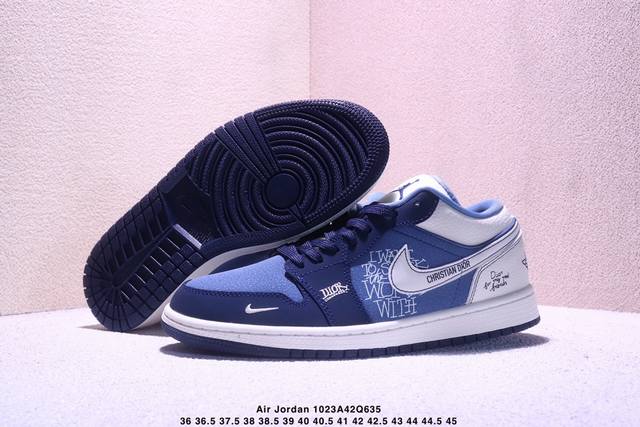 Limited Release of Overseas Hot Item! High-End Custom Air Jordan 1 Low AJ1 "Dior Collaboration---Navy Blue Raven" High-End Custom Low-Top Retro Basketball Shoes