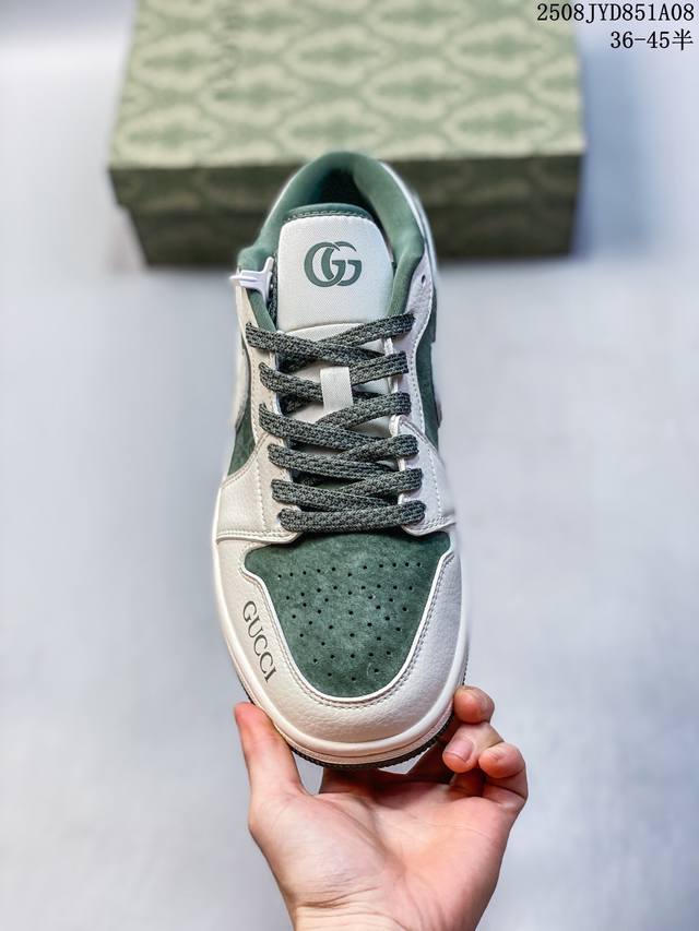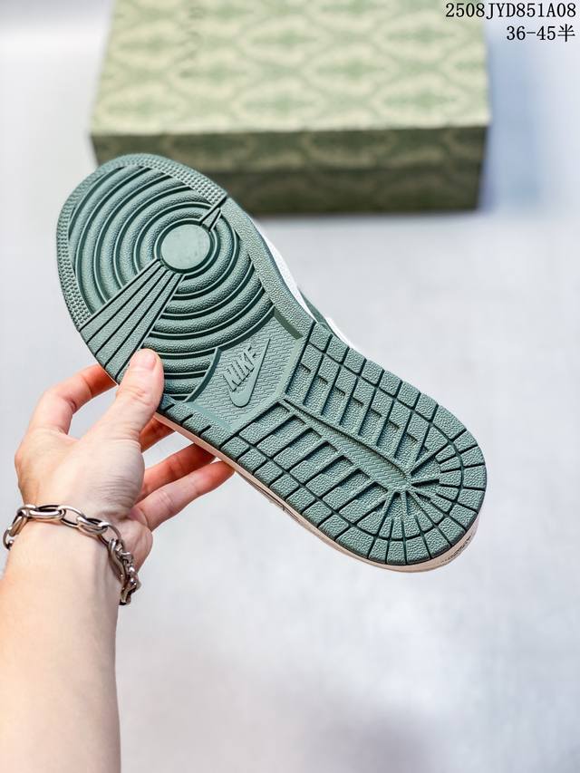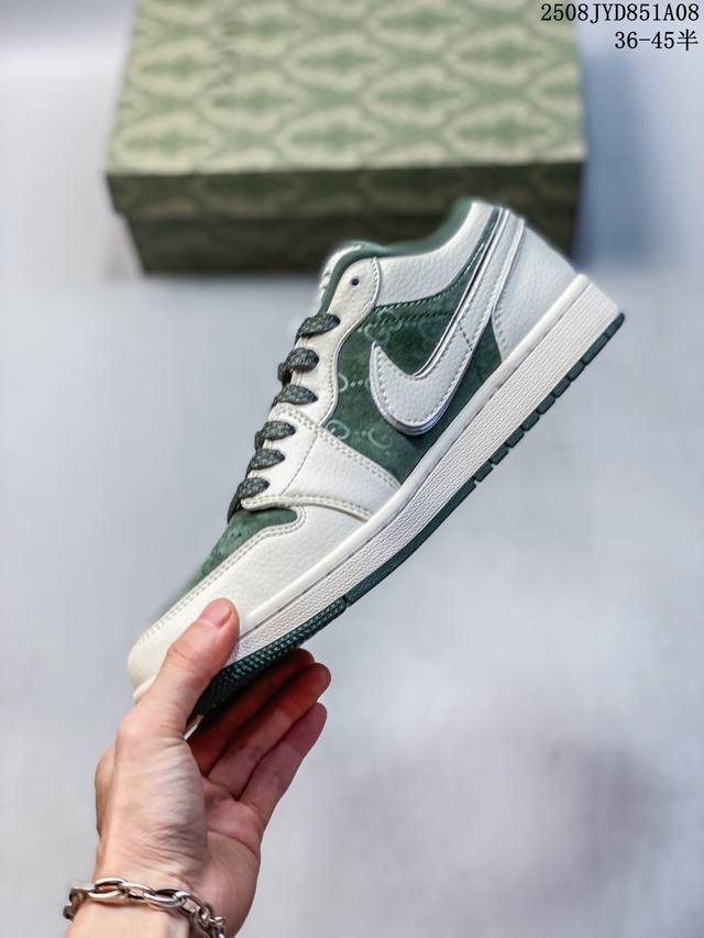 Limited sale! Air Jordan 1 Low Aj1 Qiao 1 low-top casual sneakers, "white and green print color - Gucci co-branded custom model" The unique design style and the brand's classic elements make it a pair of shoes with unique identity and value. The fresh and three-dimensional appearance, coupled with the co-branded logo, further highlights its unique identity. This color scheme shows vitality and fashion sense, which is visually eye-catching. The texture of the shoe body and the delicate details make it look high-end and full of style. This co-branding is a perfect combination of design and creativity, integrating multiple personal styles. It is a highly anticipated trendy shoe. Low-top casual sneakers with custom shoe boxes. Pure original quality shipped from a large factory with ultra-high cleanliness. The leather is cut cleanly without any burrs. The details are perfect