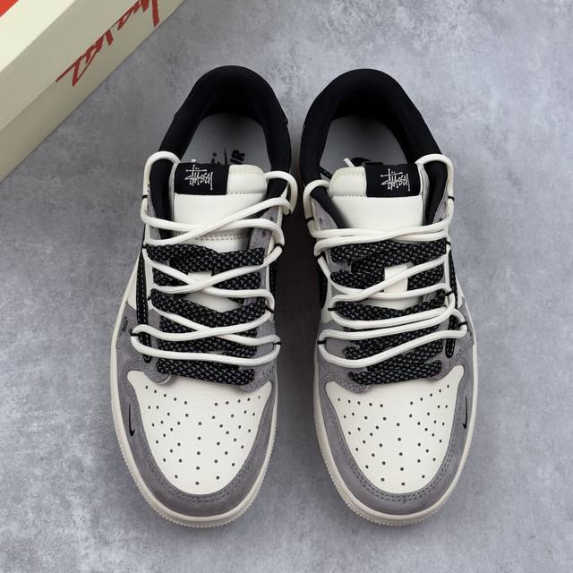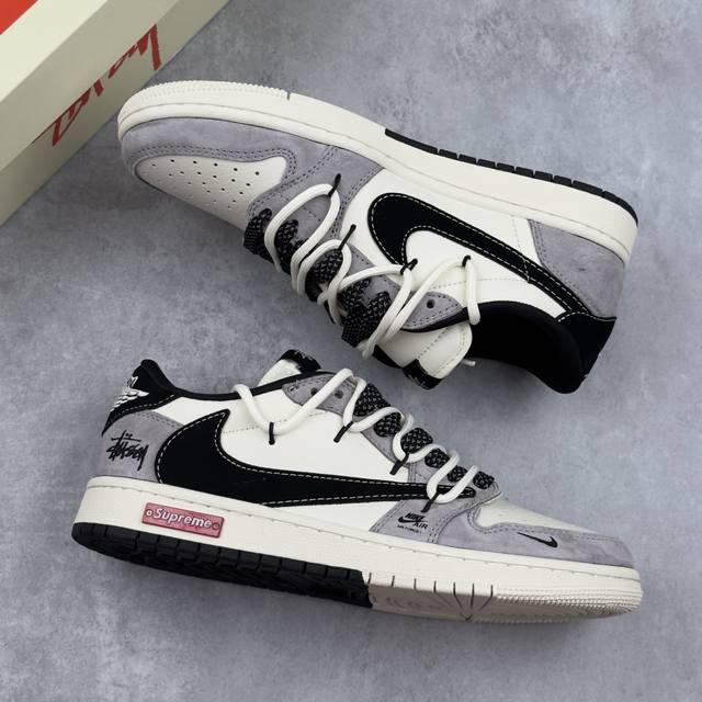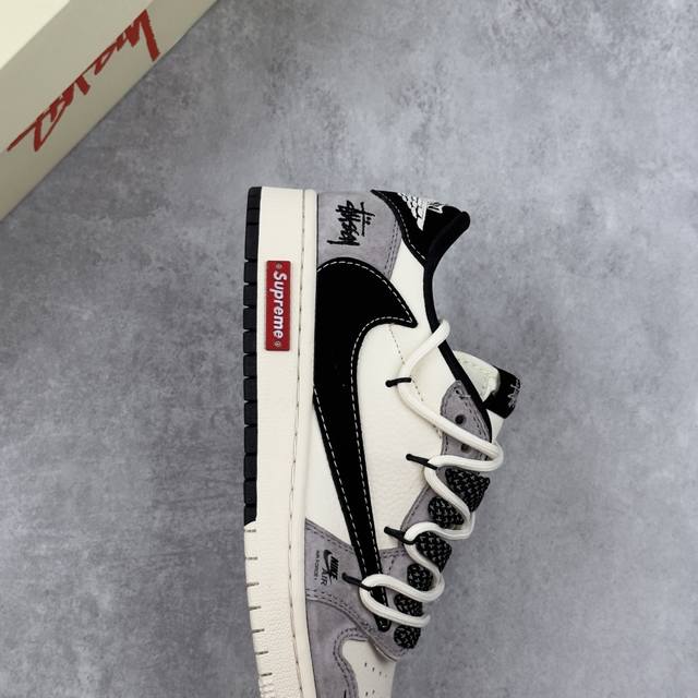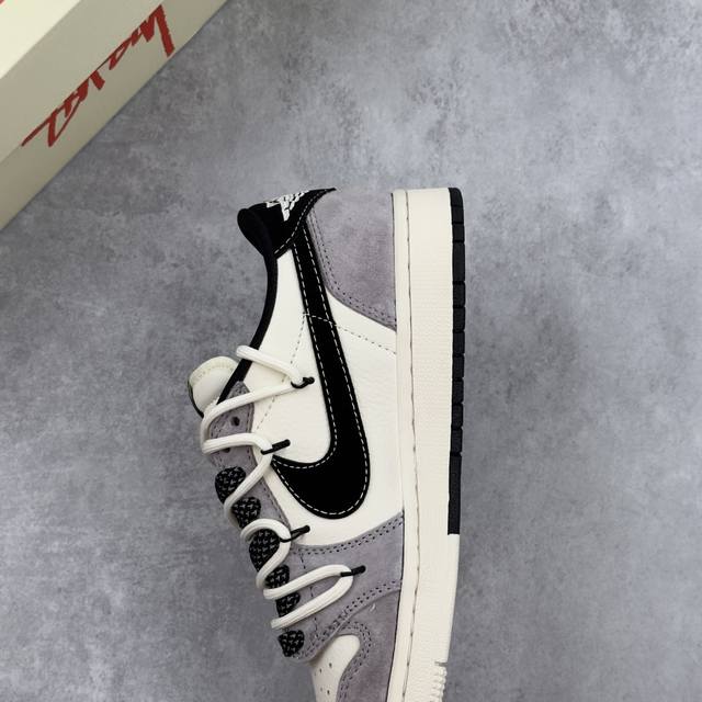Travis Scott X Fragment Design X Air Jordan 1 Low Og Sp Aj1 Stussy Joint-Black Hook Double Drawstring Low-top Cultural Casual Shoes
