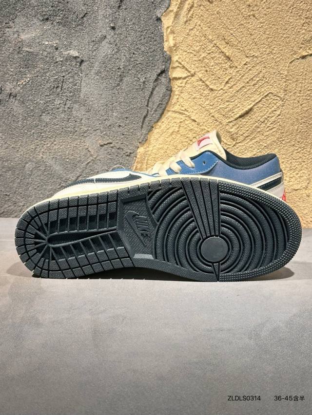 #This multi-party collaboration blends Travis Scott's unique musical style, Hiroshi Fujiwara's individual design style, and classic elements of the Jordan brand, making it a shoe with a unique identity and value. The fresh and three-dimensional appearance, coupled with the collaborative logo, further highlights its unique identity. This color scheme displays vitality and fashion sense, making it visually eye-catching. The texture of the shoe body and the delicate details make it look high-end and stylish. This "reverse swoosh" collaboration is a perfect combination of design and creativity, blending the individual styles of multiple parties, making it a highly anticipated trendy shoe.