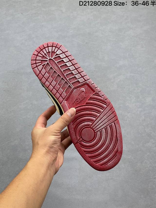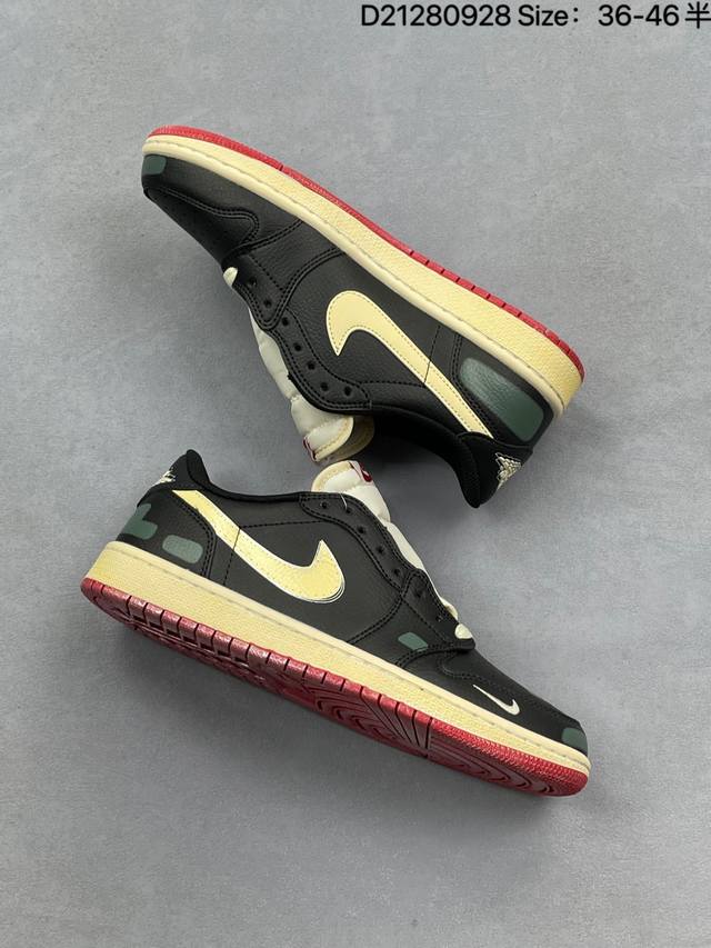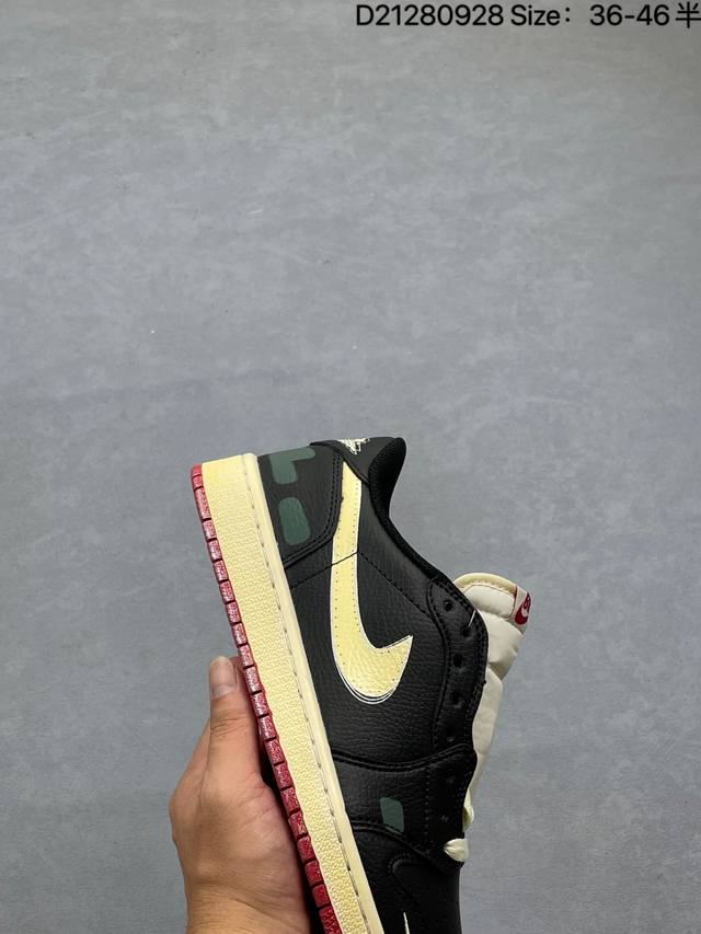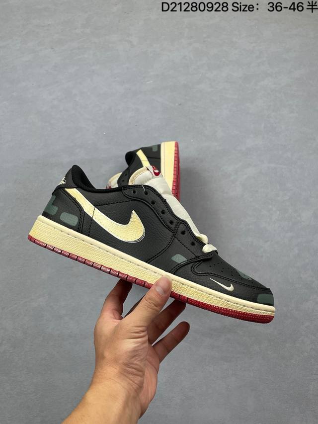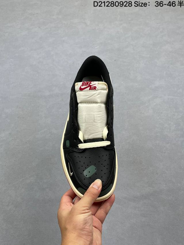 Nigel Sylvester x Air Jordan 1 Low Og "Nitro" Low-Top, White, Black, and Red, Aj1 Jordan 1 Generation, Aj1 Jordan 1 Low-Top, Unisex White, Black, and Red, Jordan Basketball Shoe Series. Speaking of Nigel Sylvester, I'm sure everyone is familiar with him. As a world-class BMX racer and a true sneaker enthusiast, he has collaborated with Nike Jordan on numerous occasions in recent years. At a recent official event, Nigel re-wore the Sample colorway from his early collaborations with the Aj1. The shoe is crafted from leather, with a white base and black leather overlays, perfectly recreating Nigel's Sample design. The tongue features a red Nike Swoosh logo, while the sides are accented with black. The heel features a red embossed Wings logo, adding a touch of luxury. The toe box features a red mini Swoosh logo embroidery. The distressed oxidized midsole and black rubber outsole complete the design.