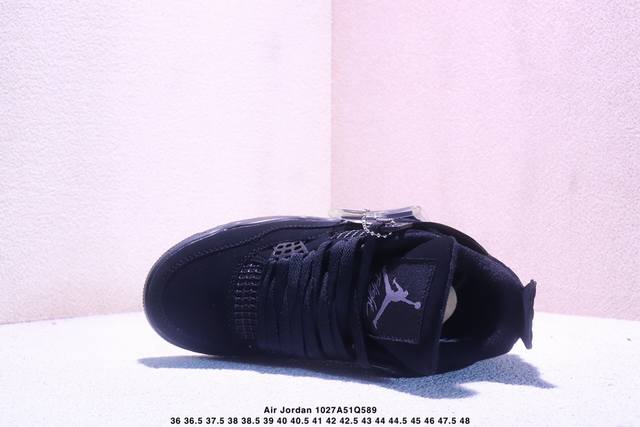 Air Jordan AJ4 Retro Black Cat, full set of original cardboard last development, original factory-supplied leather to ensure authentic and perfect presentation of the fourth generation version, 1:1. The toe curvature height and body curvature data details and processes are consistent with the original shoe. Original factory TPU mesh shoelace buckles are correct, the inner mesh fabric has distinct diamond angles, does not deform, has no excess burrs, and the soft texture is consistent with the original shoe. The only original factory shoe buckle mold on the market. The back of the molded part is visible and hidden. Original factory woven label, original factory Jumpman embroidery process, three-stitch skipping in the middle of the little toe, exclusive shoelace lacing technique, printed midsole fabric, four-line pull tab, beige masking paper, imported Hong Kong heel counter, natural and full heel, fluorescent markings throughout the shoe, pursuing ultimate perfection. Each pair is a work of art. Multiple QC quality inspections exceed the quality control standards of official goods. A truly inspection-free product.