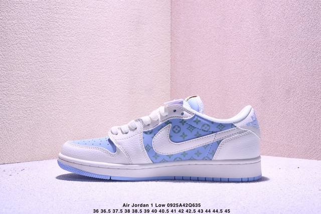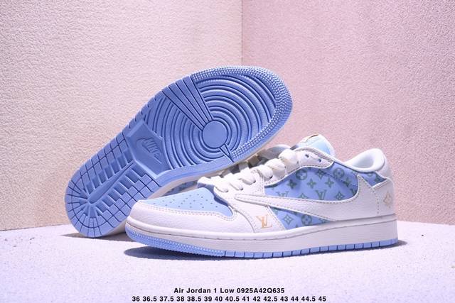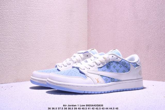 Overseas hit limited edition! High-end custom Travis Scott X Fragment Design X Jordan Air Jordan 1 Low Og Sp "Gucci joint --- off-white gray green print" high-end custom hook three-party joint low-top basketball shoes