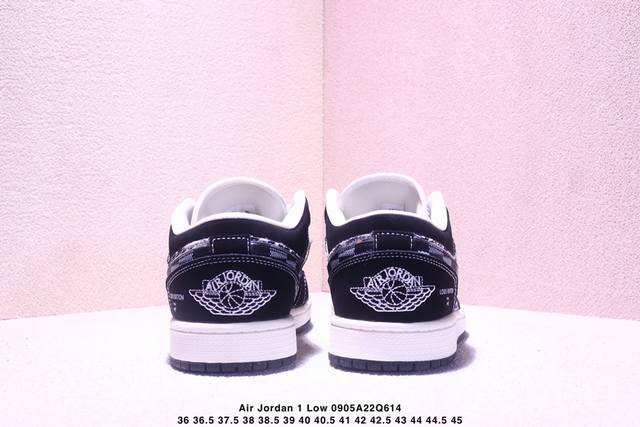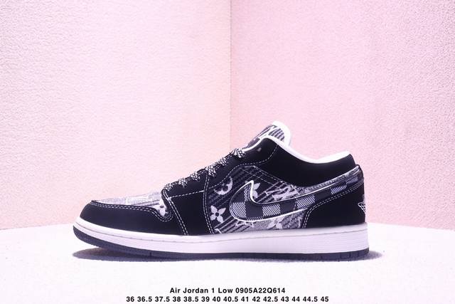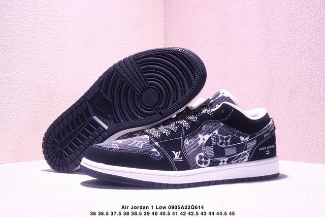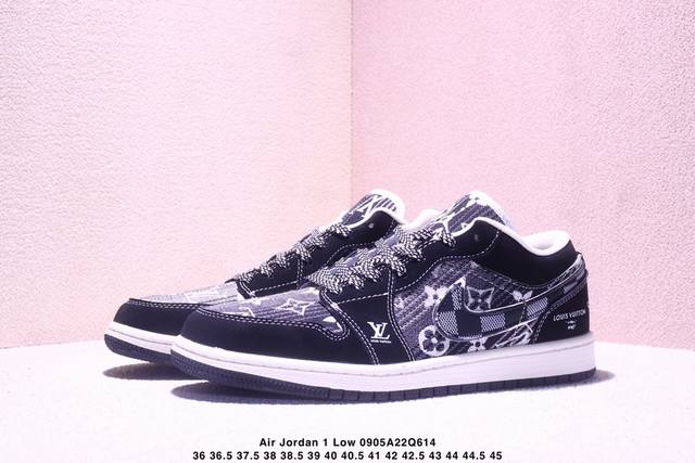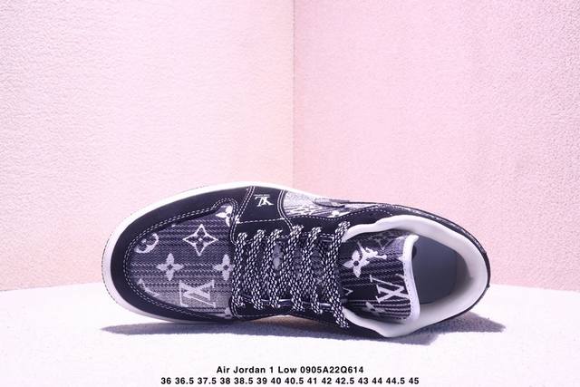 Overseas hit limited edition! High-end customized Air Jordan 1 Low Aj1 Joe 1 "LV Louis Vuitton co-branded---white and black canvas print" high-end customized low-top retro basketball shoes