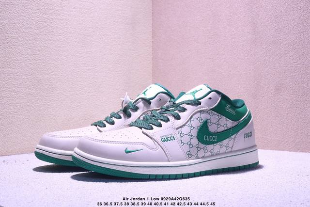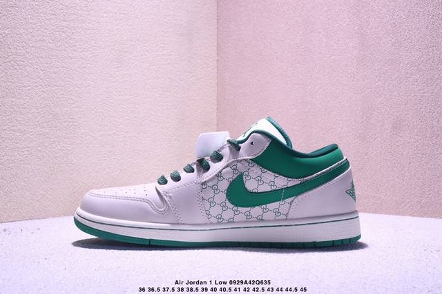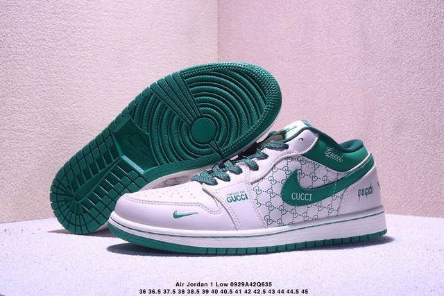 Overseas hit limited edition sale! High-end customized Air Jordan 1 Low Aj1 Joe 1 "Gucci co-branded - off-white gray-green Gucci print" high-end customized low-top retro basketball shoes