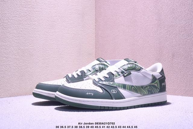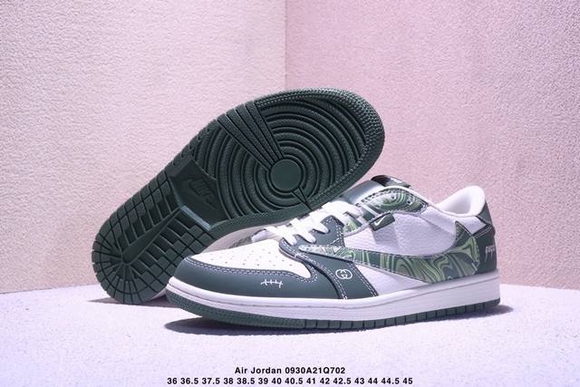 Overseas hit limited edition sale! Travis Scott x Jordan 1 Low "Gucci co-branded ghost face beige gray brown" high-end custom Jordan inverted hook low-top casual sneakers from a large factory pure original quality shipment pure version custom shoe box leather cut clean without any burrs perfect details ultra-high cleanliness