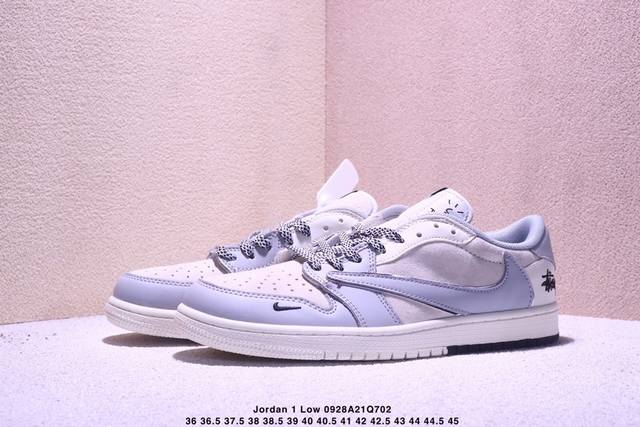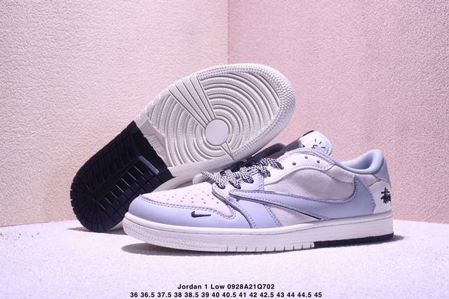 Overseas hit limited edition sale! Travis Scott x Jordan 1 Low "Nezha co-branded Lingzhu Ao Bingmi Blue" high-end custom Jordan inverted hook low-top casual sneakers from a large factory. Pure original quality shipment, pure version, custom shoe box, leather cut cleanly without any burrs, perfect details, ultra-high cleanliness