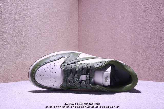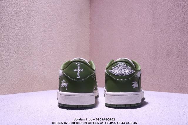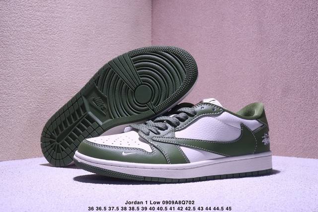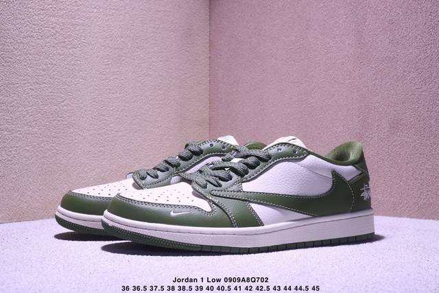 Overseas hit limited edition sale! Travis Scott x Jordan 1 Low "Stussy co-branded off-white bamboo green" high-end custom Jordan inverted hook low-top casual sneakers from a large factory pure original quality shipment pure version custom shoe box leather cut clean without any burrs perfect details ultra-high cleanliness
