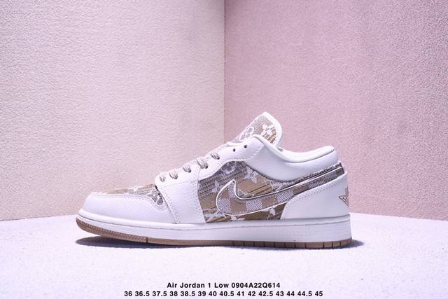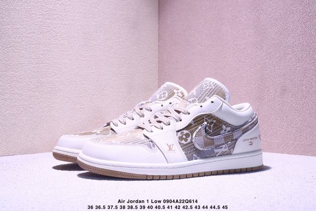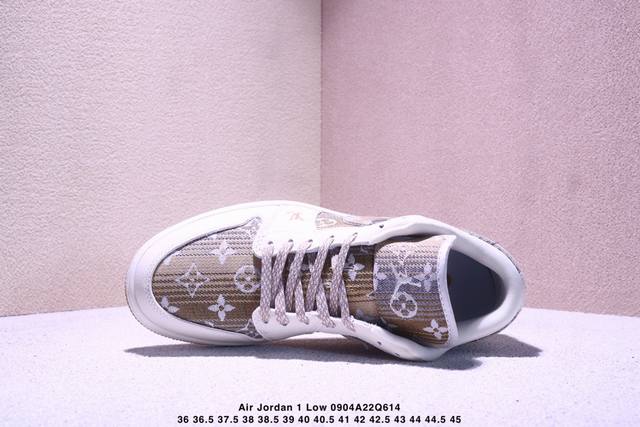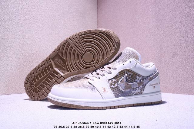 Overseas hit limited sale! High-end customized Air Jordan 1 Low Aj1 Joe 1 "LV Louis Vuitton co-branded --- off-white and yellow canvas print" high-end customized low-top retro basketball shoes