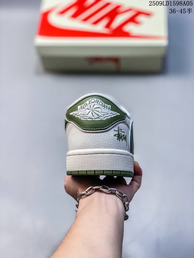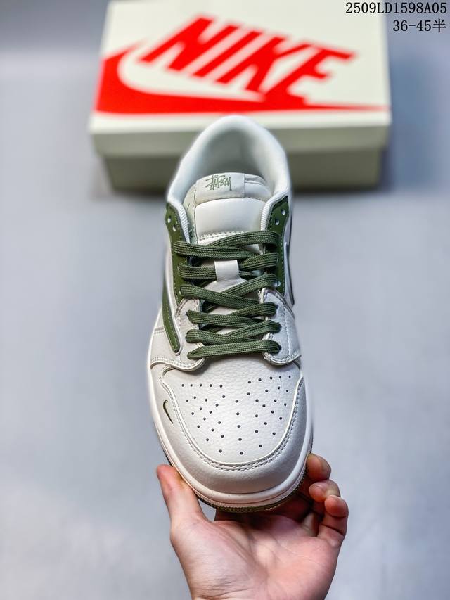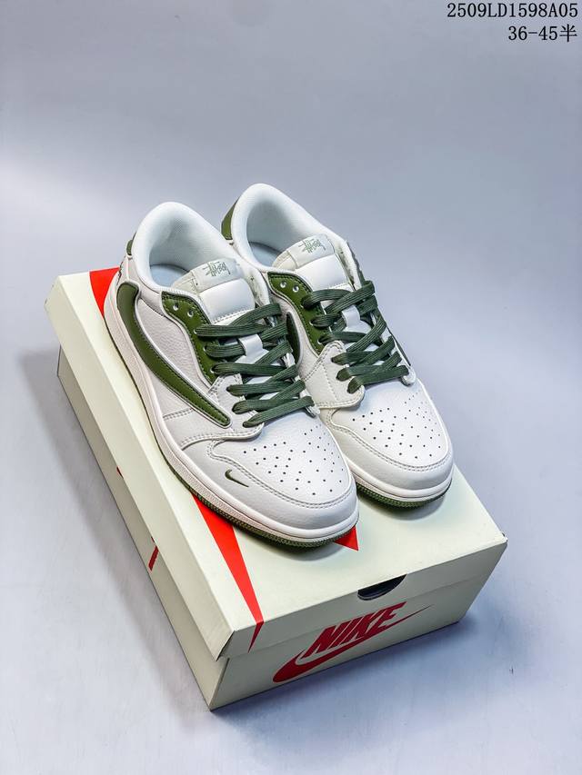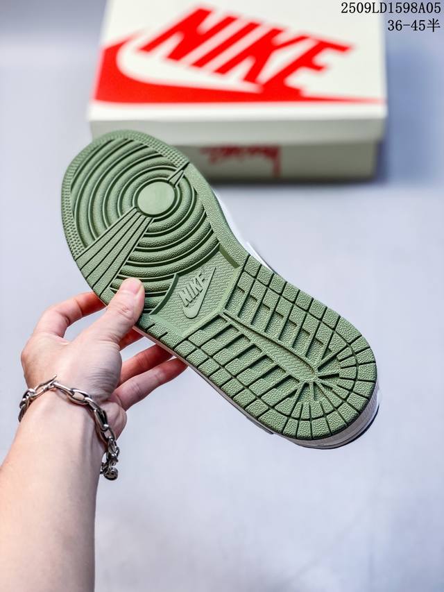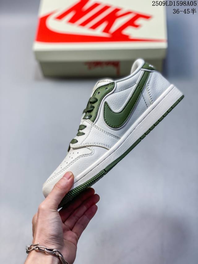 Overseas hot-selling products are on sale in limited quantities! The company-level Travis Scott X Fragment Design X Jordan Air Jordan 1 Low Og Sp Supreme joint "Off-white Dark Green" multi-party joint collaboration combines Travis Scott's unique musical style, Fujiwara Hiroshi's individual design style and the classic elements of the Jordan brand, making it a pair of shoes with unique identity and value. The fresh and three-dimensional appearance, coupled with the joint logo, further highlights its unique identity. This color scheme shows vitality and fashion sense, which is visually eye-catching. The texture of the shoe body and the delicate details make it look high-end and full of style. This "reverse hook" joint is a perfect combination of design and creativity, integrating the individual styles of multiple parties. It is a highly anticipated trendy shoe. Low-top casual sneakers, customized shoe boxes, large factories, pure original quality shipments, ultra-high cleanliness, clean leather cutting without any burrs, perfect details