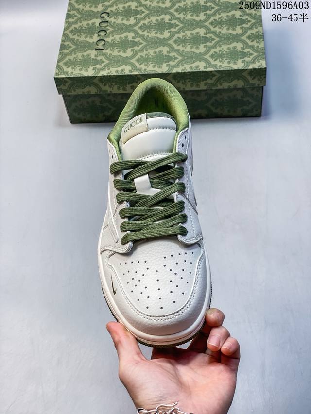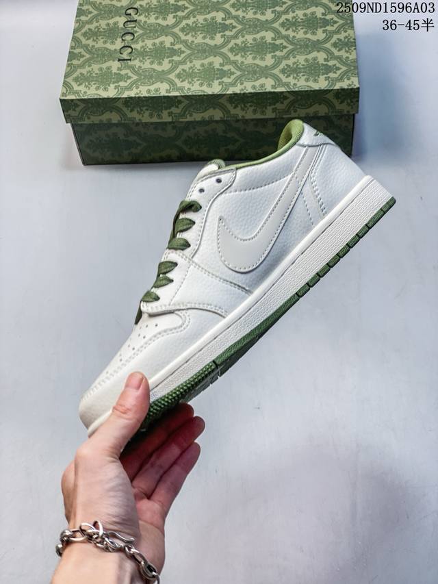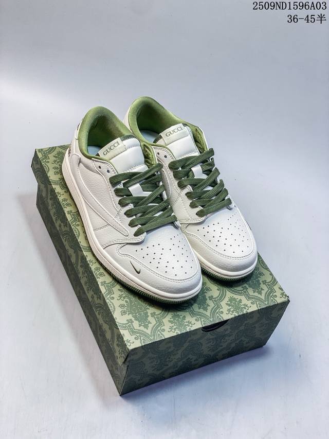 Overseas hot-selling products are on sale in limited quantities! The company-level Travis Scott X Fragment Design X Jordan Air Jordan 1 Low Og Sp Stussy joint "Off-White Army Green" multi-party joint collaboration combines Travis Scott's unique musical style, Fujiwara Hiroshi's individual design style and the classic elements of the Jordan brand, making it a pair of shoes with unique identity and value. The fresh and three-dimensional appearance plus the joint logo further highlight its unique identity. This color scheme shows vitality and fashion sense, which is visually eye-catching. The texture of the shoe body and the delicate details make it look high-end and full of style. This "reverse hook" joint is a perfect combination of design and creativity, integrating the individual styles of multiple parties. It is a highly anticipated trendy shoe. Low-top casual sneakers with custom shoe boxes. Large factory pure original quality shipment. Super high cleanliness. The leather is cut cleanly without any burrs. The details are perfect.