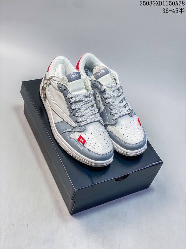 Overseas hot-selling products are on sale in limited quantities! Travis Scott x Fragment Design x Jordan Air Jordan 1 Low Og Sp "Stussy Joint White Gray Red Tail" Multi-party joint collaboration combines Travis suede blue hook S Scott's unique musical style, Fujiwara Hiroshi's individual design style and the classic elements of the Jordan brand, making it a pair of shoes with unique identity and value. The fresh and three-dimensional appearance plus the joint logo further highlight its unique identity. This color scheme shows vitality and fashion sense, which is visually eye-catching. The texture of the shoe body and the delicate details make it look high-end and full of style. This "reverse hook" joint is a perfect combination of design and creativity, integrating the individual styles of multiple parties. It is a highly anticipated trendy low-top casual sneakers with custom shoe boxes. Large factory pure original quality shipment with ultra-high cleanliness. The leather is cut cleanly without any burrs and the details are perfect