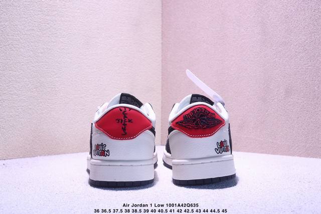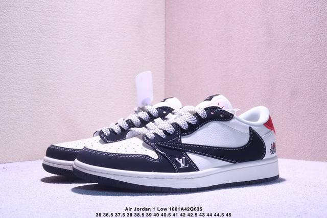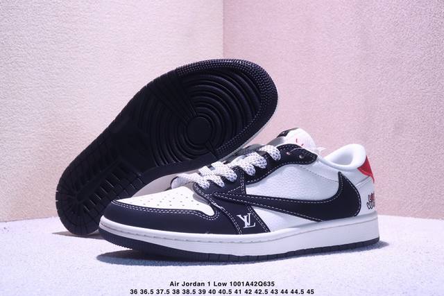 Overseas hot-selling products are on sale in limited quantities! Travis Scott x Fragment Design x Jordan Air Jordan 1 Low Og Sp "Lv Joint Red Tail Black Hook" Multi-party joint collaboration combines Travis Scott's unique musical style, Fujiwara Hiroshi's individual design style and the classic elements of the Jordan brand, making it a pair of shoes with unique identity and value. The fresh and three-dimensional appearance coupled with the joint logo further highlights its unique identity. This color scheme shows vitality and fashion sense, which is visually eye-catching. The texture of the shoe body and the delicate details make it look high-end and full of style. This "reverse hook" joint is a perfect combination of design and creativity, integrating the individual styles of multiple parties. It is a highly anticipated trendy low-top casual sneakers with custom shoe boxes. Large factory pure original quality shipment with ultra-high cleanliness. The leather is cut cleanly without any burrs and the details are perfect.