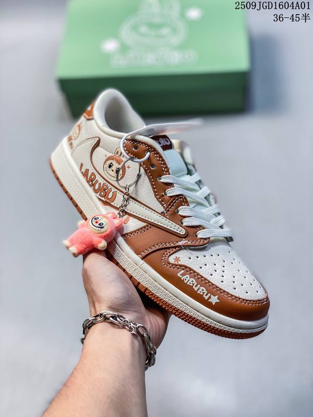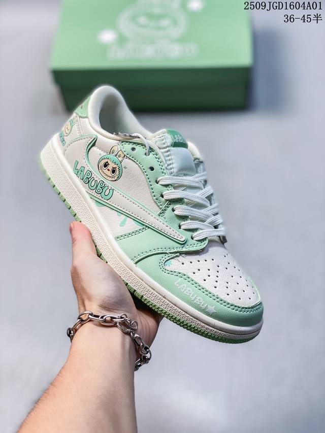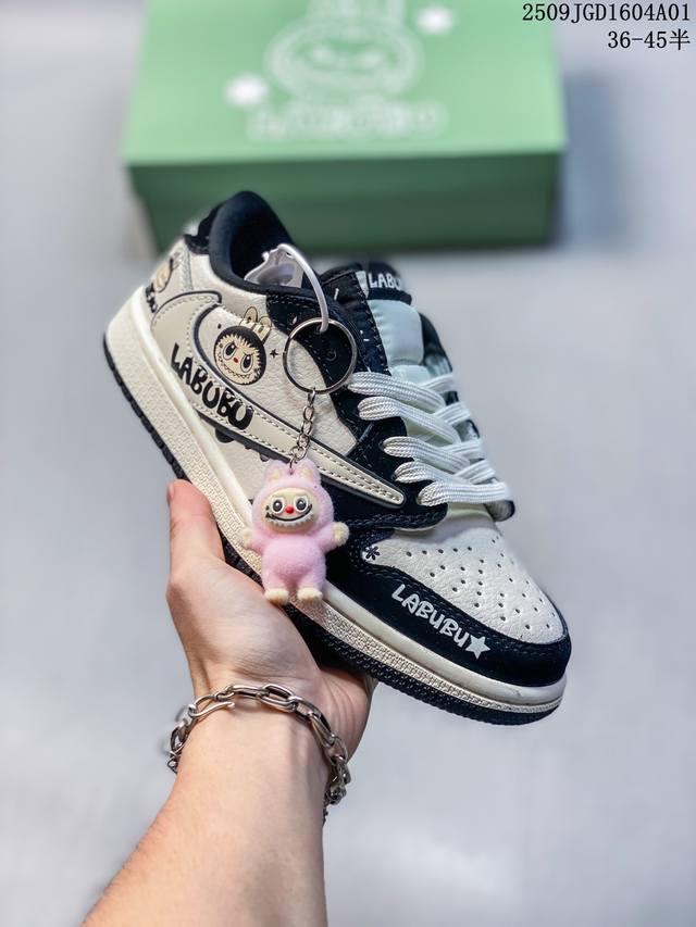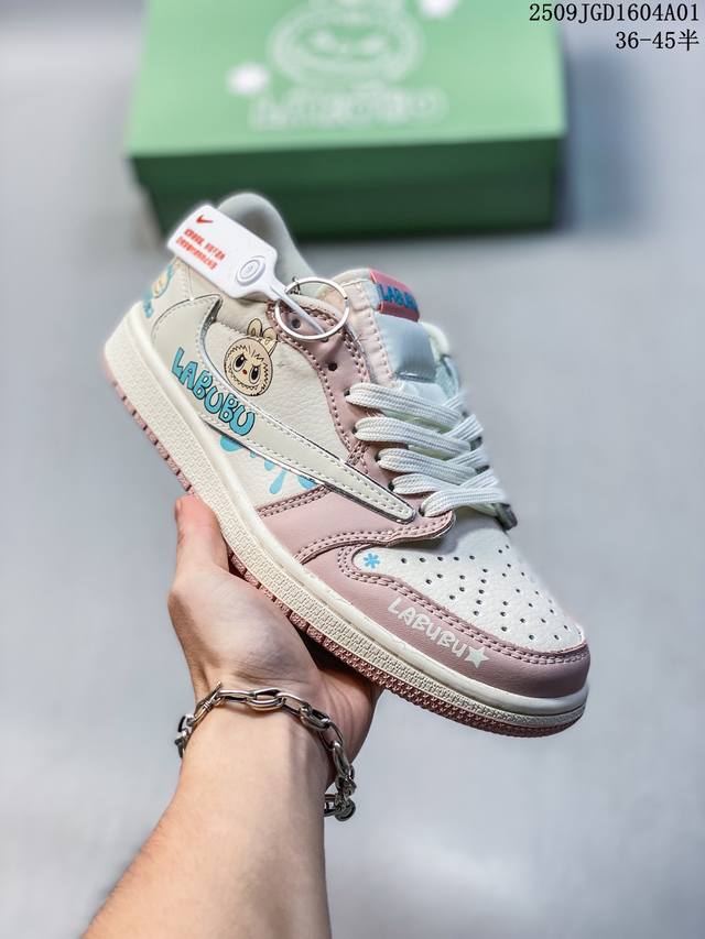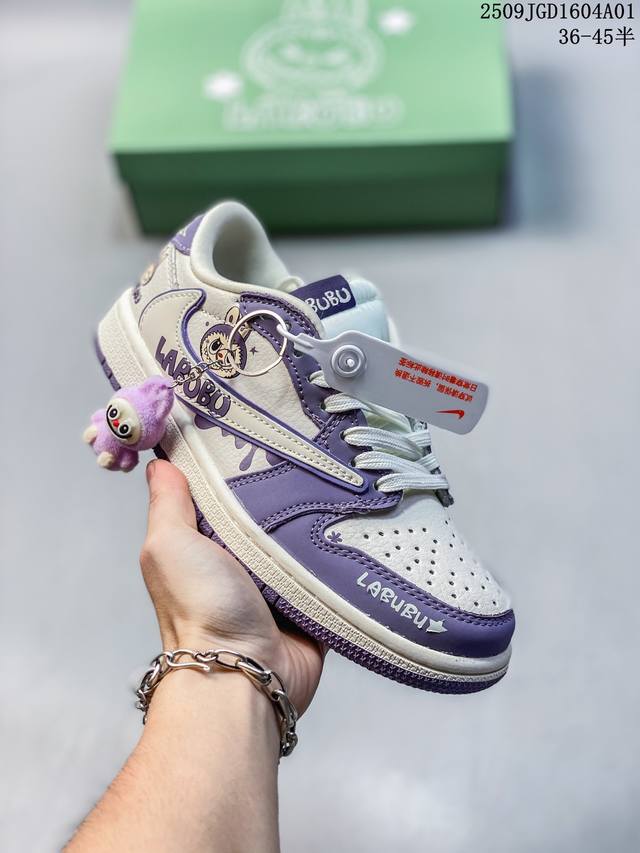 Overseas hot-selling products are on sale in limited quantities! Travis Scott x Fragment Design x Jordan Air Jordan 1 Low Og Sp "Labubu Joint --- Milky White Purple" Labubu print Labubu doll pendant high-end customization Multi-party joint collaboration combines Travi S Scott's unique musical style, Fujiwara Hiroshi's individual design style and the classic elements of the Jordan brand to make it a pair of shoes with unique identity and value. The fresh and three-dimensional appearance plus the joint logo further highlight its unique identity. This color scheme shows vitality and fashion sense, which is visually eye-catching. The texture of the shoe body and the delicate details make it look high-end and full of style. This "reverse hook" joint is a perfect combination of design and creativity, integrating the individual styles of multiple parties. It is a highly anticipated trendy shoe. Low-top casual sneakers with custom shoe boxes. Large factory pure original quality shipment. Super high cleanliness. The leather is cut cleanly without any burrs. The details are perfect.