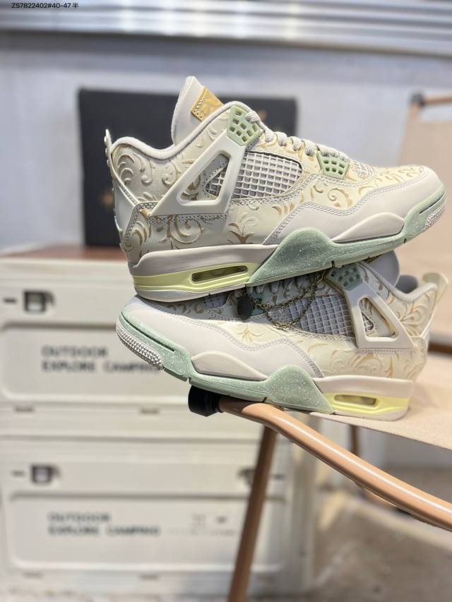 Pure Original Top-Tier Version, Original Last and File Development, Paper Last Pattern#Uses High-Quality Top-Grain Leather Upper Material#Restores Authentic Details#Original Factory Assembly Line Molding Process#Factory-Level Upper Lacing and Glue Injection Effect#Looks Super Cool on Foot! Air Jordan 4 X Travis Scott Cactus Jack Ts Collaboration Ice Blue AJ4 Mid-Top Retro Casual Sports Basketball Shoes. Adhering to the design philosophy of lightweight speed basketball shoes, the design reduces weight while improving comfort. The midsole continues the use of the previous model's split rear visible Air Sole unit. The lacing holes and heel pull tab are inspired by basketball nets, cleverly integrating basketball into the shoe's design, giving the overall shoe a fluid, rhythmic, and elegant feel. Im8116 Zs7822402#40-47 Half DDD