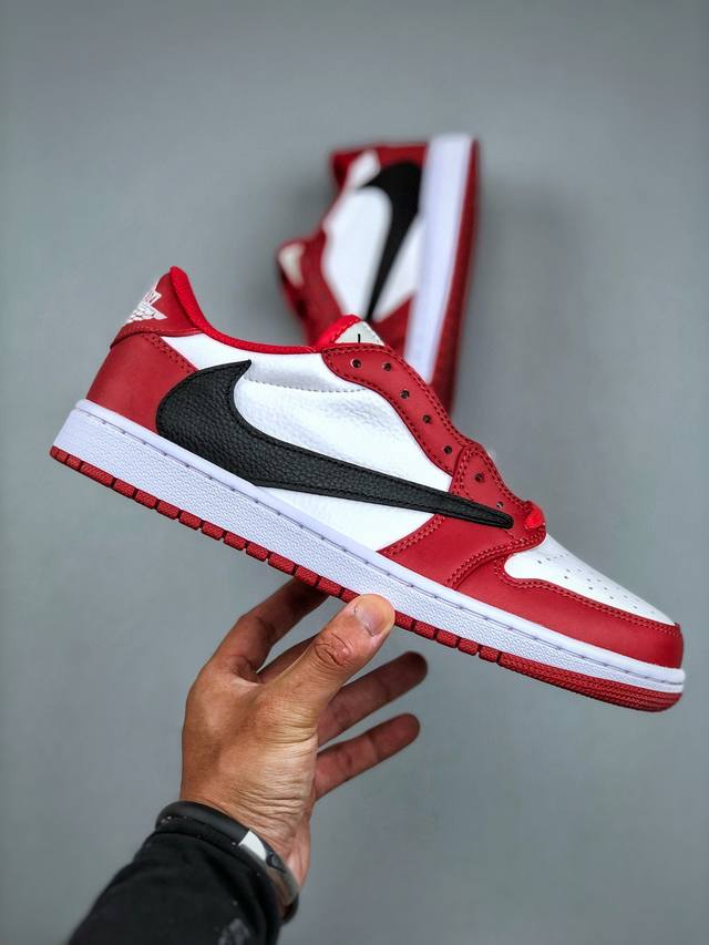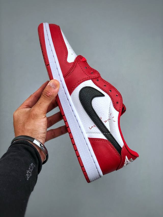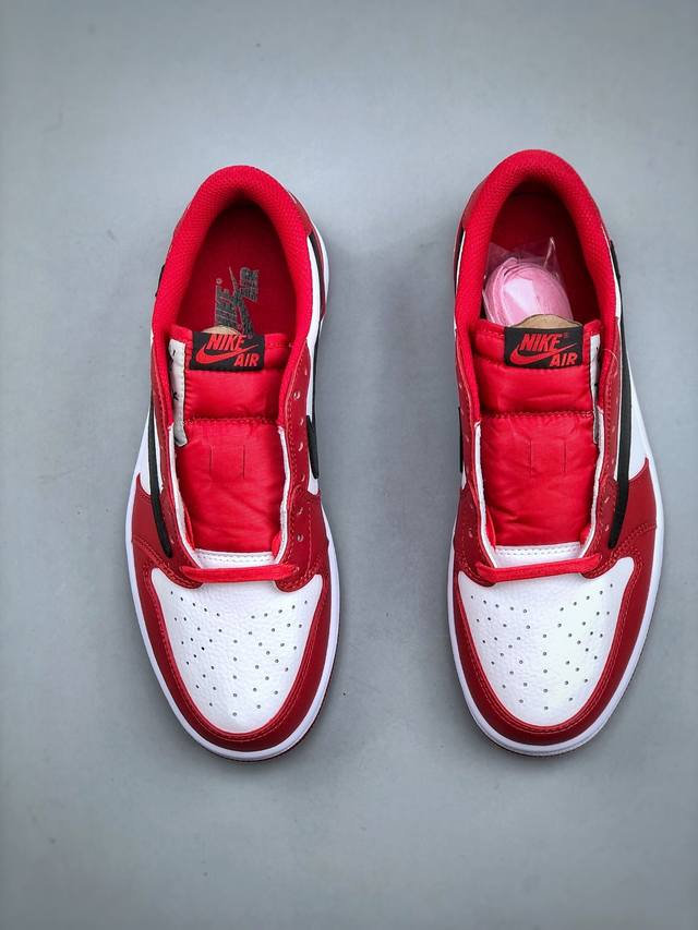 S version Aj1 inverted T Air Jordan 1 Aj1 Joe 1 red and white inverted hook low-