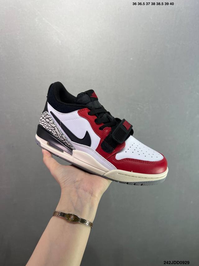 Special offer: Air Jordan Legacy Aj312 Low low-top retro basketball shoes in white, black, and red. Fj7221-101. The strongest and most exclusive product on the market. Complete set of original cardboard lasts, original outsole molds, three-dimensional non-slip texture, original data, TPU snap-on closures on the heel, and authentic visible Air Sole cushioning. Authentic and perfect 312-generation silhouette, the only correct toe box angle, curvature, and waistline. Imported Hong Kong treasures provide a naturally full heel. Fluorescent markings and key points throughout the shoe, striving for ultimate perfection. Each pair is a work of art. Multiple QC inspections exceed the company's quality control standards. A truly inspection-free product. The upper is made of leather, and the velcro across the upper is very eye-catching. The Swoosh logo on the side is partially obscured by the upper, which is quite interesting. The velcro is marked with the NK logo, and the tongue features Jordan's classic red wings logo. The heel and sole are both designed with Aj3. The heel also uses the classic crack pattern. Size: 36 36.5 37.5 38 38.5 39 40 40.5 41 42 42.5 43 44 44.5 45 46 47.5
