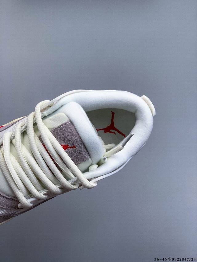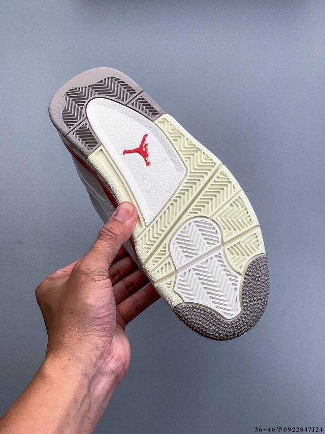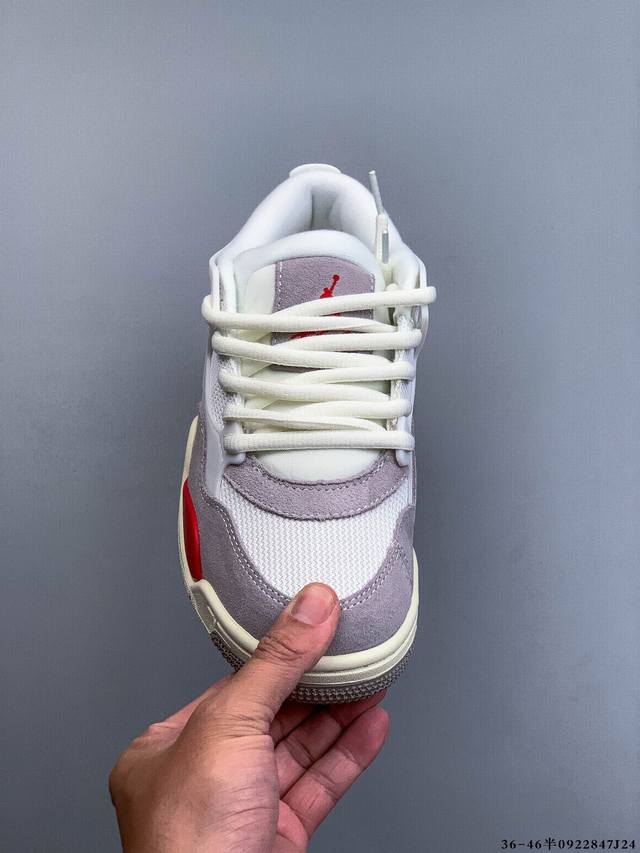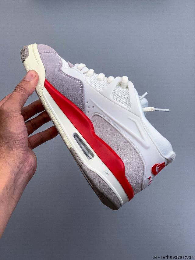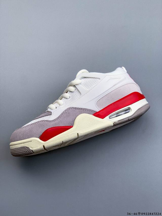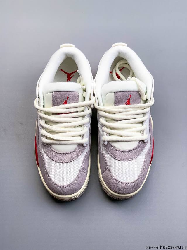 The Air Jordan Aj4 Rm remake of the low-top retro basketball shoe has been released. It adopts a low-top design while retaining many classic Aj4 elements. The upper is made of leather and suede. The classic Aj4 TPU material extends to the heel to enhance the shoe's stability. The mesh design on the side of the shoe has been removed. The Nike Air logo on the tail has also been retained. It also has the Jumpman logo. The midsole is also equipped with a visible Air cushion. The sole is finished with an off-white midsole and outsole. 0922847J24