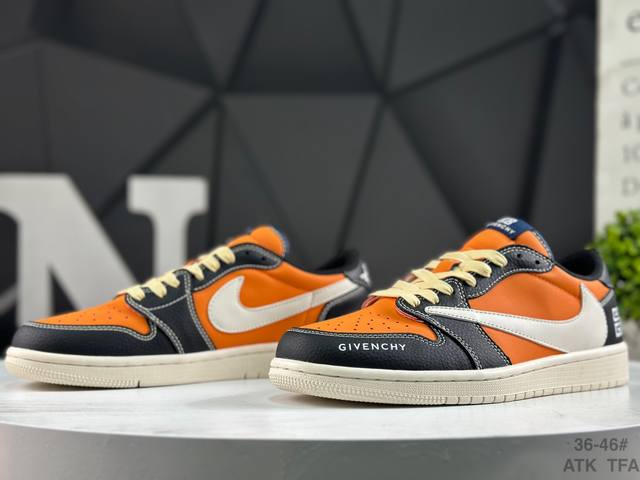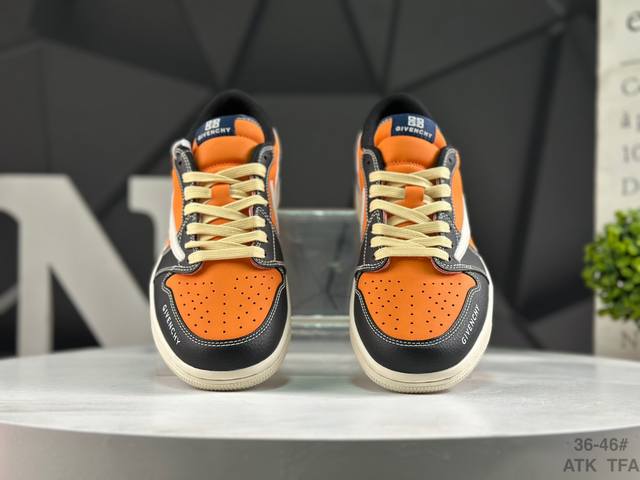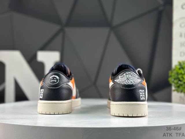 Travis Scott X Fragment Design X Air Jordan 1 Low Og Sp AJ1 Low-Top Casual Sneakers DDD This multi-party collaboration blends Travis Scott's unique musical style, Hiroshi Fujiwara's distinctive design aesthetic, and classic Jordan brand elements, resulting in a shoe with a unique identity and value. The fresh and three-dimensional appearance, coupled with the collaborative logo, further emphasizes its unique identity. This color scheme displays vitality and fashion, making it visually eye-catching. The texture and delicate details of the shoe body give it a high-end and stylish look. This "reverse swoosh" collaboration is a perfect combination of design and creativity, blending the individual styles of multiple parties, making it a highly anticipated trendy shoe. DDD Product Code: Xy2688 118 DDD Size: 36 36.5 37.5 38 38.5 39 40 40.5 41 42 42.5 43 44 44.5 45 46 Atk Tfa DDD