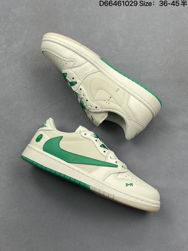 Travis Scott X Fragment Design X Jordan Air Jordan 1 Low Og Sp Bape Collaboration "White and Blue" This multi-party collaboration blends Travis Scott's unique musical style, Hiroshi Fujiwara's distinctive design aesthetic, and classic Jordan brand elements, resulting in a shoe with a unique identity and value. The fresh and three-dimensional appearance, coupled with the collaborative logo, further emphasizes its unique identity. This color scheme displays vitality and fashion, visually eye-catching. The texture and meticulous details of the shoe body give it a high-end and stylish feel. This "Reverse Swoosh" collaboration is a perfect combination of design and creativity, blending the individual styles of multiple parties, making it a highly anticipated trendy low-top casual sneaker. Custom shoe box, high-quality original from a large factory, extremely clean leather with clean cuts and no rough edges, perfect details. Product Code: Dm7866-107 Sizes: 36 36.5 37.5 38 38.5 39 40 40.5 41 42 42.5 43 44 44.5 45