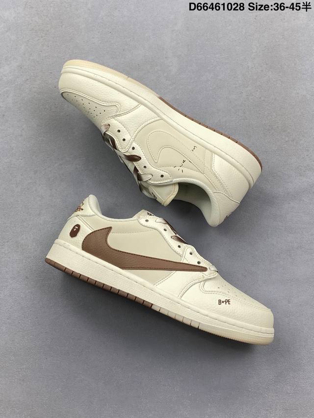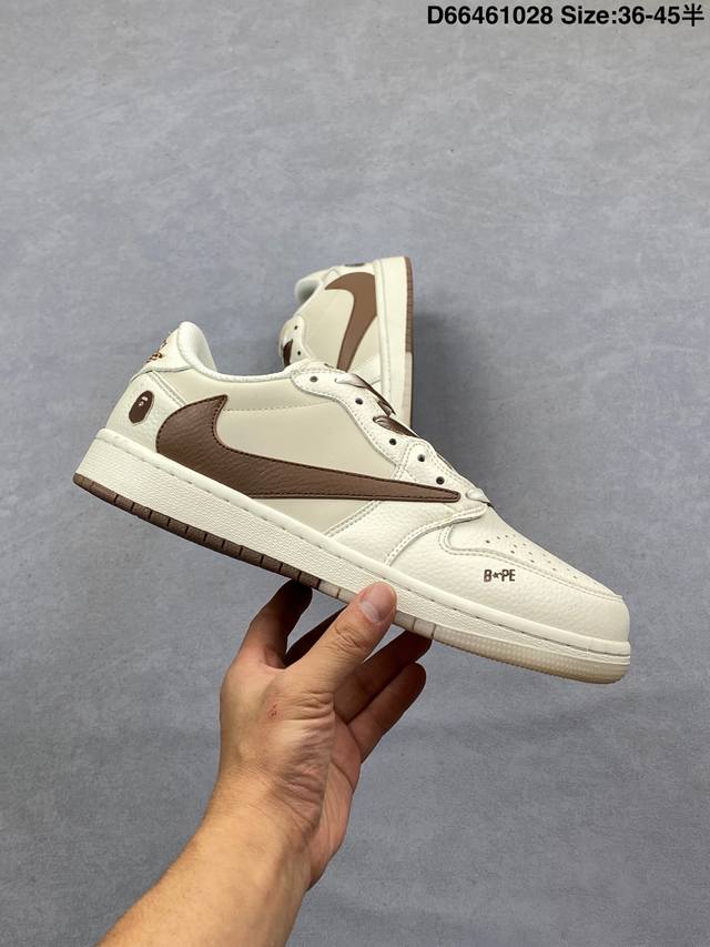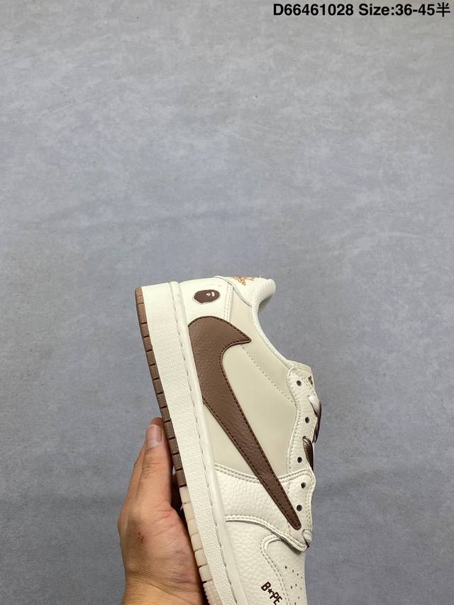 Travis Scott X Fragment Design X Jordan Air Jordan 1 Low Og Sp Bape Collaboration "White and Blue" This multi-party collaboration blends Travis Scott's unique musical style, Hiroshi Fujiwara's distinctive design aesthetic, and classic Jordan brand elements, resulting in a shoe with a unique identity and value. The fresh and three-dimensional appearance, coupled with the collaborative logo, further emphasizes its unique identity. This color scheme displays vitality and fashion, making it visually eye-catching. The texture and meticulous details of the shoe body give it a high-end and stylish feel. This "Reverse Swoosh" collaboration is a perfect combination of design and creativity, blending the individual styles of multiple parties, making it a highly anticipated trendy low-top casual sneaker. Custom shoe box, high-quality original from a large factory, extremely clean leather with clean cuts and no rough edges, perfect details. Product Code: Dm7866-107 Sizes: 36 36.5 37.5 38 38.5 39 40 40.5 41 42 42.5 43 44 44.5 45