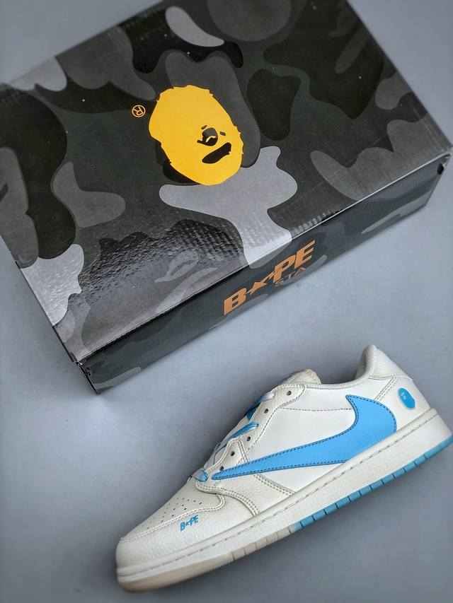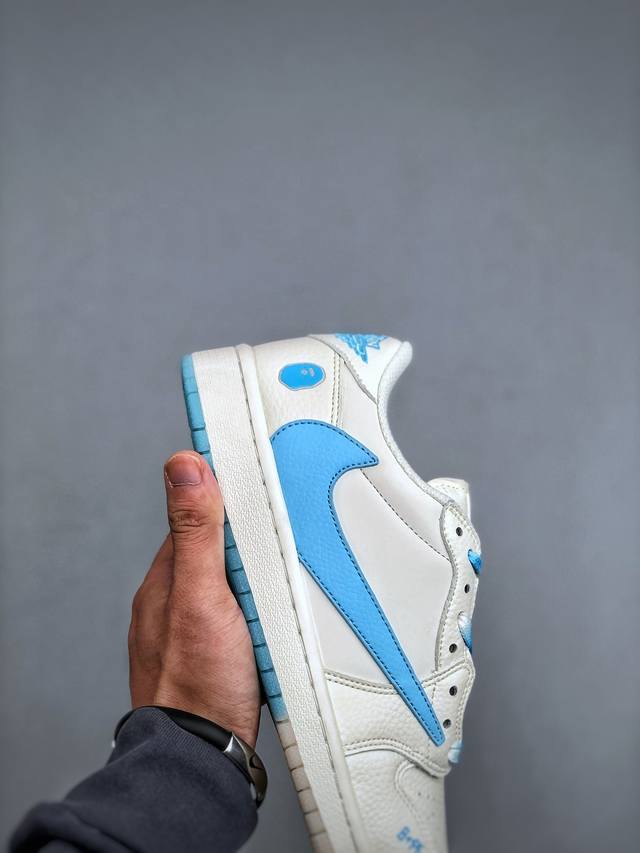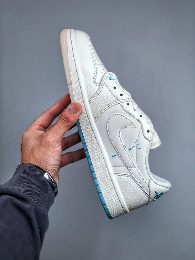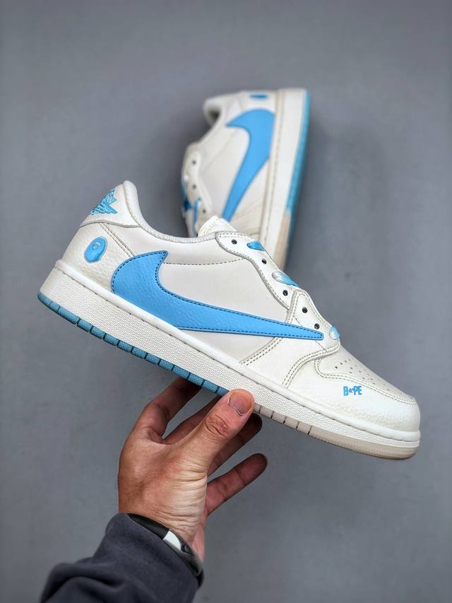 Travis Scott X Fragment Design X Jordan Air Jordan 1 Low Og Sp Bape Collaboration "White and Blue" This multi-party collaboration blends Travis Scott's unique musical style, Hiroshi Fujiwara's distinctive design aesthetic, and classic Jordan brand elements, resulting in a shoe with a unique identity and value. The fresh and three-dimensional appearance, coupled with the collaborative logo, further emphasizes its unique identity. This color scheme displays vitality and fashion, visually eye-catching. The texture and meticulous details of the shoe body give it a high-end and stylish feel. This "Reverse Swoosh" collaboration is a perfect combination of design and creativity, blending the individual styles of multiple parties, making it a highly anticipated trendy low-top casual sneaker. Custom shoe box, high-quality original from a large factory, extremely clean leather with clean cuts and no rough edges, perfect details. Product Code: Dm7866-107 Sizes: 36-45 (Half Price)