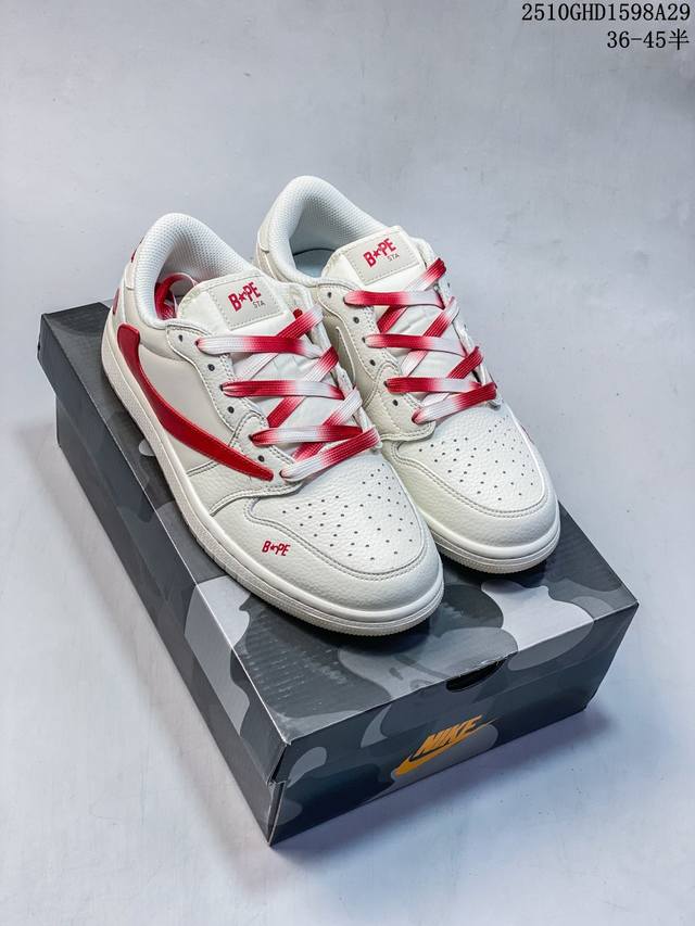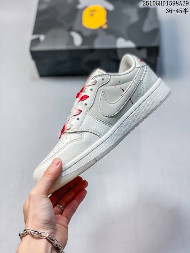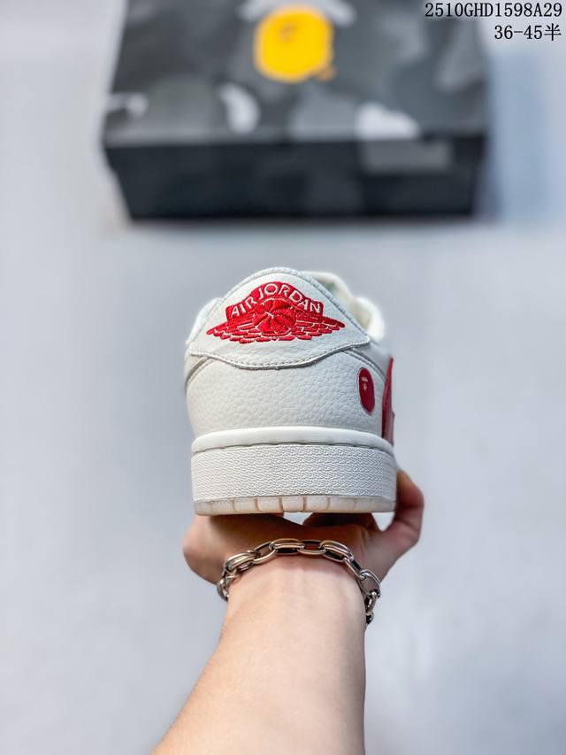 Travis Scott X Fragment Design X Jordan Air Jordan 1 Low Og Sp Bape Collaboration "White and Red" This multi-party collaboration blends Travis Scott's unique musical style, Hiroshi Fujiwara's distinctive design aesthetic, and classic Jordan brand elements, resulting in a shoe with a unique identity and value. The fresh and three-dimensional appearance, coupled with the collaborative logo, further emphasizes its unique identity. This color scheme displays vitality and fashion, visually eye-catching. The texture and meticulous details of the shoe body give it a high-end and stylish feel. This "Reverse Swoosh" collaboration is a perfect combination of design and creativity, blending the individual styles of multiple parties, making it a highly anticipated trendy low-top casual sneaker. Custom shoe box, high-quality original from a large factory, extremely clean leather with clean cuts and no rough edges, perfect details. Product Code: Dm7866-101 Sizes: 36 36.5 37.5 38 38.5 39 40 40.5 41 42 42.5 43 44 44.5 45