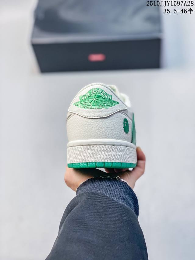 Travis Scott X Fragment Design X Jordan Air Jordan 1 Low Og Sp Bape Collaboration "White & Green" This multi-party collaboration blends Travis Scott's unique musical style, Hiroshi Fujiwara's distinctive design aesthetic, and classic Jordan brand elements, resulting in a shoe with a unique identity and value. The fresh and three-dimensional appearance, coupled with the collaborative logo, further emphasizes its unique identity. This color scheme displays vitality and fashion, visually eye-catching. The texture and meticulous details of the shoe body give it a high-end and stylish feel. This "Reverse Swoosh" collaboration is a perfect combination of design and creativity, blending the individual styles of multiple parties, making it a highly anticipated trendy low-top casual sneaker. Custom shoe box, high-quality original from a large factory, extremely clean leather with clean cuts and no rough edges, perfect details. Product Code: Dm7866-116 Sizes: 35.5 36 36.5 37.5 38 38.5 39 40 40.5 41 42 42.5 43 44 44.5 45 46