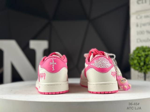 Travis Scott X Fragment Design X Jordan Air Jordan 1 Low Og Sp "Pink Laboo" low-top casual sneakers, custom shoe box, pure original quality shipment from a large factory, ultra-high cleanliness, clean leather cutting without any burrs, perfect details