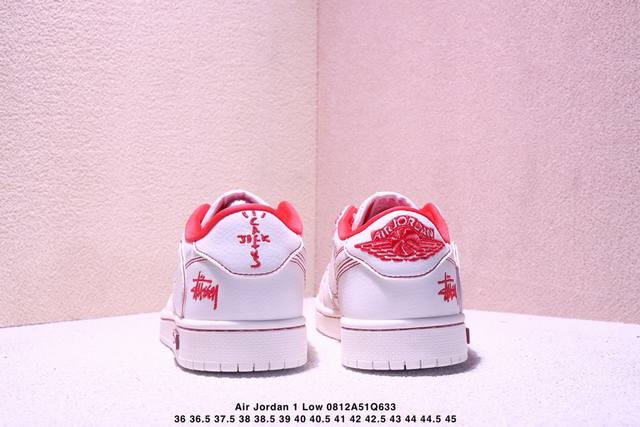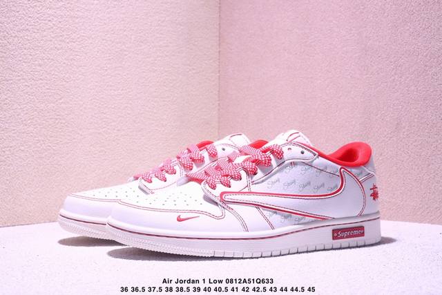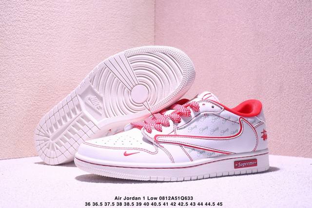 Travis Scott x Fragment Design x Jordan Air Jordan 1 Low Og Sp "Supreme Stussy Joint English Red Line" multi-party joint collaboration combines Travis Scott's unique musical style, Fujiwara Hiroshi's individual design style and classic elements of the Jordan brand, making it a pair of shoes with unique identity and value. The fresh and three-dimensional appearance coupled with the joint logo further highlights its unique identity. This color scheme shows vitality and fashion sense, which is visually eye-catching. The texture of the shoe body and the delicate details make it look high-end and full of style. This "reverse hook" joint name is the perfect combination of design and creativity, integrating the individual styles of multiple parties. It is a highly anticipated trendy low-top casual sneakers with custom shoe boxes. Large factory pure original quality shipment with ultra-high cleanliness. The leather is cut cleanly without any burrs, and the details are perfect.
