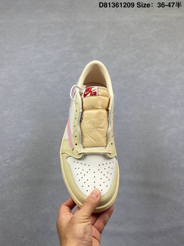 Travis Scott X Fragment Design X Jordan Air Jordan 1 Low Og Sp. This multi-brand collaboration blends Travis Scott's unique musical style, Hiroshi Fujiwara's distinctive design aesthetic, and classic Jordan brand elements, resulting in a shoe with a unique identity and value. The fresh and three-dimensional appearance, coupled with the collaborative logo, further emphasizes its unique identity. This color scheme displays vitality and fashion, making it visually eye-catching. The texture and meticulous details of the shoe body give it a high-end and stylish feel. This "reverse swoosh" collaboration is a perfect combination of design and creativity, blending the individual styles of multiple parties. It's a highly anticipated trendy low-top casual sneaker. Custom shoe box, high-quality original from a large factory, extremely clean leather with no rough edges, perfect details. Product Code: Iq7604-101. Sizes: 36, 36.5, 37.5, 38, 38.5, 39, 40, 40.5, 41, 42, 42.5, 43. 44 44.5 45 46 47 Ddd Encoding: D81361209 DDD