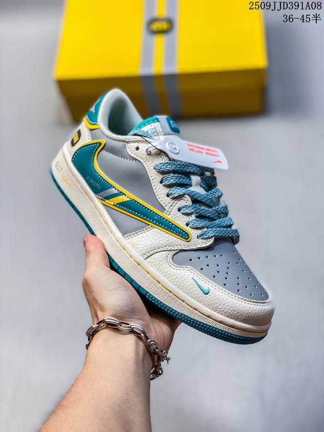 Travis Scott X Fragment Design X Jordan Air Jordan 1 Low Og Sp "Xiaomi Joint Su7Ultru" multi-party joint collaboration combines Travis Scott's unique musical style, Fujiwara Hiroshi's individual design style and classic elements of the Jordan brand, making it a pair of shoes with unique identity and value. The fresh and three-dimensional appearance coupled with the joint logo further highlights its unique identity. This color scheme shows vitality and fashion sense, which is visually eye-catching. The texture and delicate details of the shoe make it look high-end and full of style. This "reverse hook" joint name is a perfect combination of design and creativity, integrating the individual styles of multiple parties. It is a highly anticipated trendy low-top casual sneakers with custom shoe boxes. Large factory pure original quality shipment with ultra-high cleanliness. The leather is cut cleanly without any burrs, and the details are perfect.