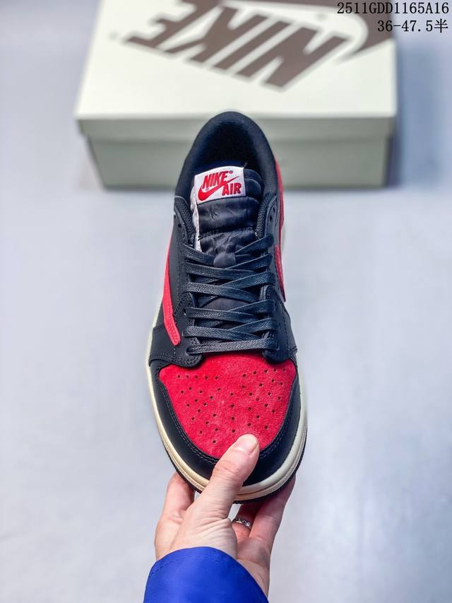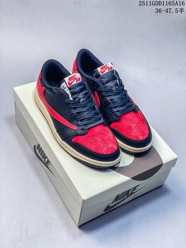 Travis Scott X Jordan Air Jordan 1 Reverse Swoosh Soft Comfort Shock Absorber Anti-slip Wear-resistant Low-top Retro Basketball Shoes Unisex Black/Red DDD Style Code: Dz4137-700 DDD Sizes: 36-47.5 (including half sizes) DDD 11Gdd1165A16 DDD