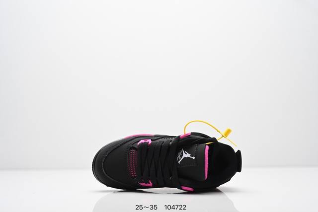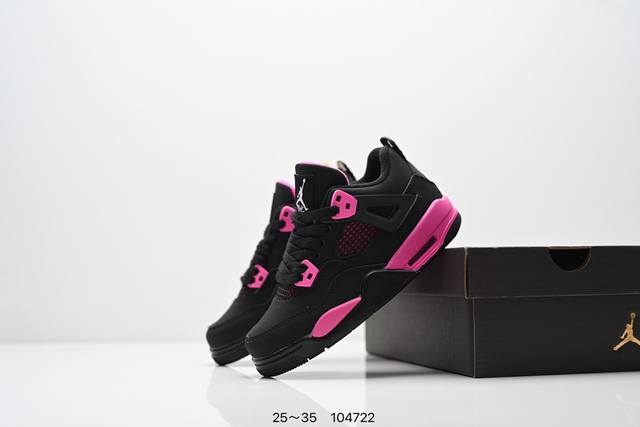 Kids' Shoes Nike Air Jordan 4 (AJ4) Retro Casual Sports Basketball Shoes. Adhering to the design philosophy of lightweight speed basketball shoes, this shoe reduces weight while improving comfort. The midsole continues the use of a split, visible Air Sole unit in the heel. The lacing eyelets and heel pull tab are inspired by basketball nets, cleverly integrating basketball into the shoe's design, giving it a fluid, rhythmic, and elegant feel. Product Code: Ct8527 Sizes: 25-35 Code: 104722