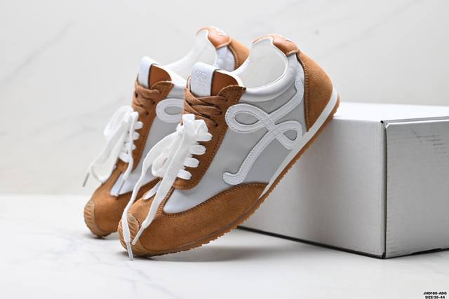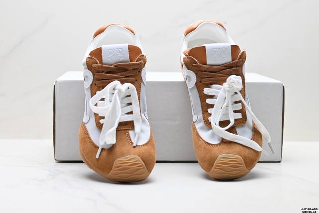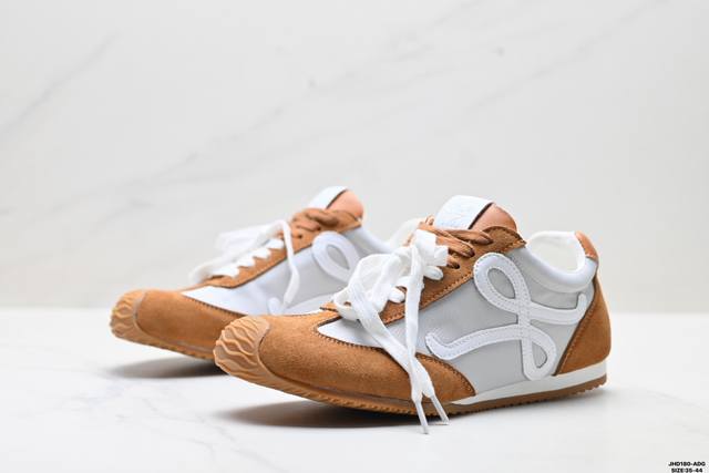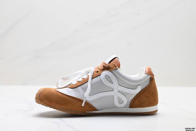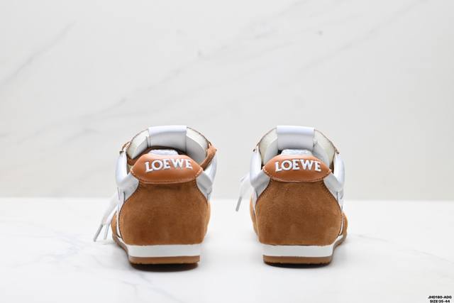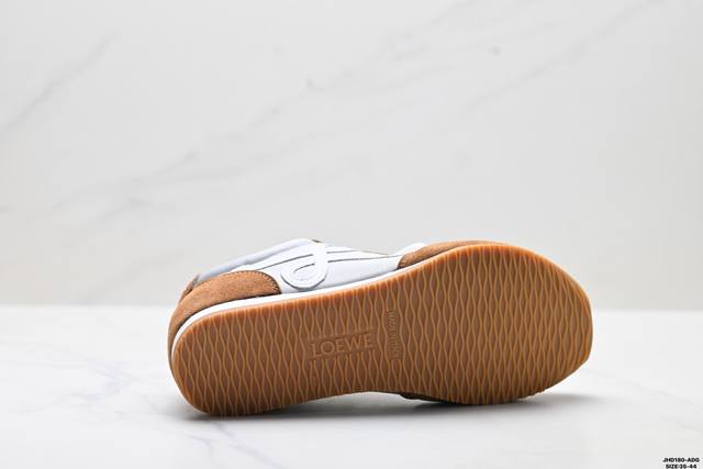 Company Grade Loewe Ballet Runner 2.0 Sneakers Series, Retro Style, German Training, Thin Sole, Versatile Casual Sports Shoes. Made in Guangdong, genuine original factory, asymmetrical toe design, sock-like internal structure, lightweight rubber outsole extending to the toe, heel label adorned with injection-molded rubber Loewe logo. Max Recommended Version, upgraded original last, paper pattern development, fully handmade lasting process, suede cowhide leather with layered leather trim, original high-density scratch-resistant nylon upper material, excellent softness, double-layer latex cushioning insole, lightweight EVA cushioning combination rubber anti-slip outsole. Sizes: 35-44. ID: J hd180-Adg.