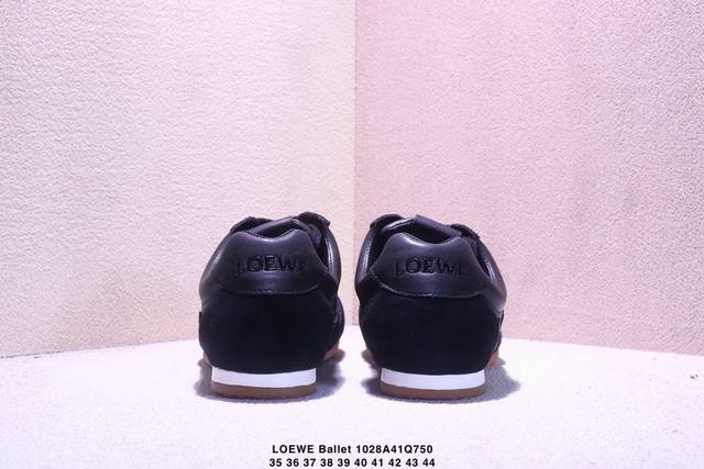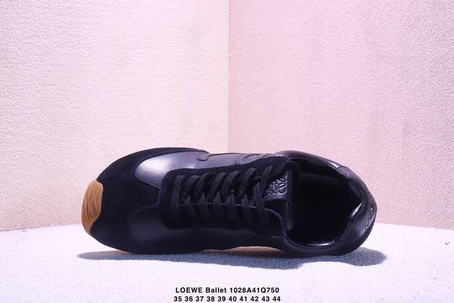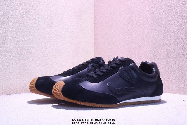 Company-grade Loewe Ballet Runner 2.0 calfskin round-toe lace-up low-top casual shoes. The new Loewe Ballet Runner 2.0 sneakers have won the favor of the fashion world with their unique design and comfort. The shoe features a playful toe design and an equally innovative, soft, and comfortable heel, hailed as the most comfortable walking shoe of the year. Wearing them feels like walking on flat ground, allowing you to easily enjoy the fun of exercise. The shoe's simple and clean silhouette, low-top design, and the brand's initials on the side reveal the brand's high quality in the details. These shoes are not only comfortable but also highly versatile, showcasing a unique sense of style for both everyday outings and sports occasions. Inspired by ballet flats and 1970s footwear, the perfect combination of retro elements and modern design makes them instantly captivating. Once you wear these Loewe Ballet Runner sneakers, you'll fall in love with them and never want to try any other athletic shoes again. Item Number: L814282X02 Size: As shown in the picture Xm1028Q750