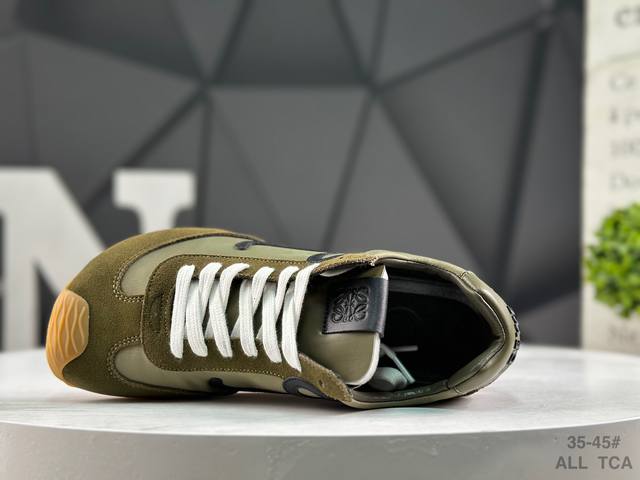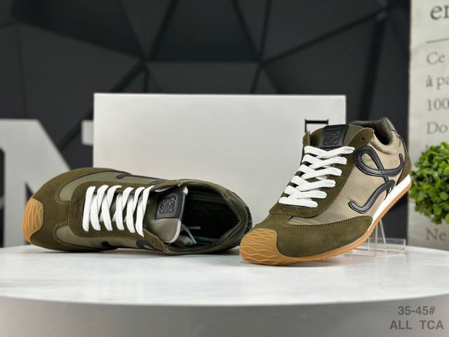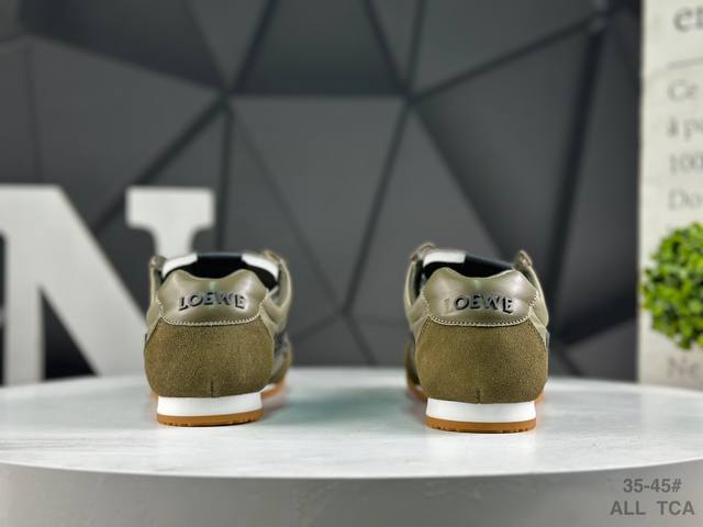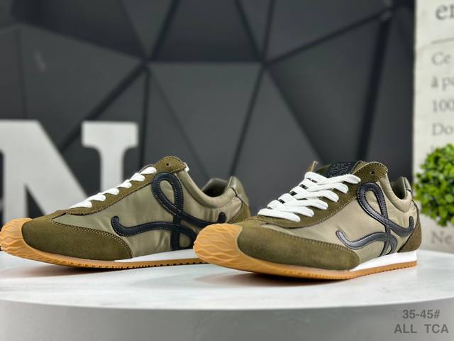 Loewe Ballet Runner 2.0 Calfskin Round Toe Lace-up Low-Top Casual Shoes. The new Loewe Ballet Runner 2.0 sneakers have won the favor of the fashion world with their unique design and comfort. The shoe features a playful toe design and an equally innovative, soft, and comfortable heel, hailed as the most comfortable walking shoe of the year. Wearing them feels like walking on flat ground, allowing you to easily enjoy the fun of exercise. The shoe has a simple and clean silhouette, with a low-top design that exudes style. The side features the brand's initials, revealing the brand's high quality in the details. This shoe is not only comfortable but also extremely versatile, showcasing a unique sense of style for both everyday outings and sports occasions. Inspired by ballet flats and 1970s footwear, the perfect combination of retro elements and modern design makes it instantly appealing. Once you wear these Loewe Ballet Runner sneakers, you'll fall in love with them and never want to try any other athletic shoes again. Sizes: As shown in the picture. All Tca DDD