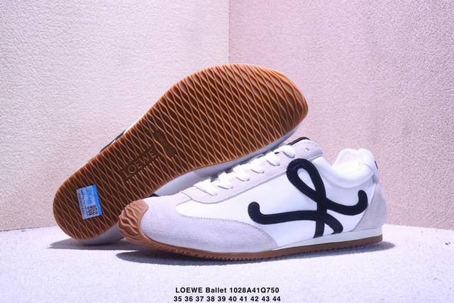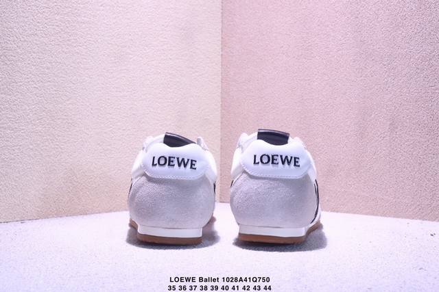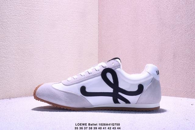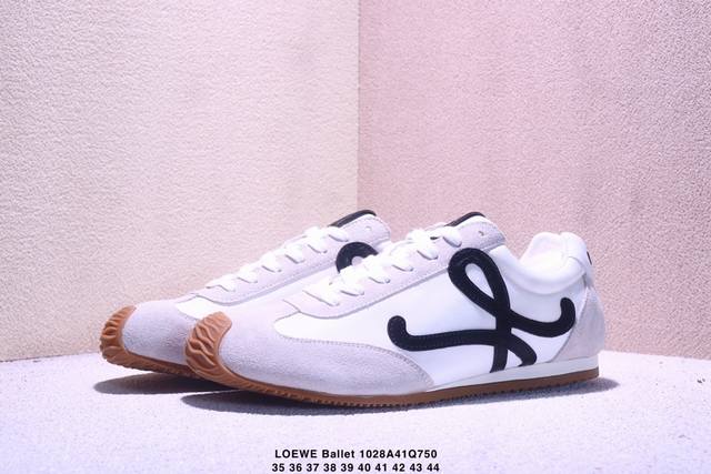 Loewe Ballet Runner 2.0 calfskin round-toe lace-up low-top casual shoes. The new Loewe Ballet Runner 2.0 sneakers have won the favor of the fashion world with their unique design and comfort. The shoe features a playful toe design and an equally innovative, soft, and comfortable heel, hailed as the most comfortable walking shoe of the year. Wearing them feels like walking on flat ground, allowing you to easily enjoy the fun of exercise. The shoe's simple and clean silhouette, low-top design, and the brand's initials on the side reveal the brand's high quality in the details. These shoes are not only comfortable but also highly versatile, showcasing a unique sense of style for both everyday outings and sports occasions. Inspired by ballet flats and 1970s footwear, the perfect combination of retro elements and modern design makes them instantly appealing. Once you wear these Loewe Ballet Runner sneakers, you'll fall in love with them and never want to try any other athletic shoes again. Item Number: L814282X02 Size: As shown in the picture Xm1028Q750